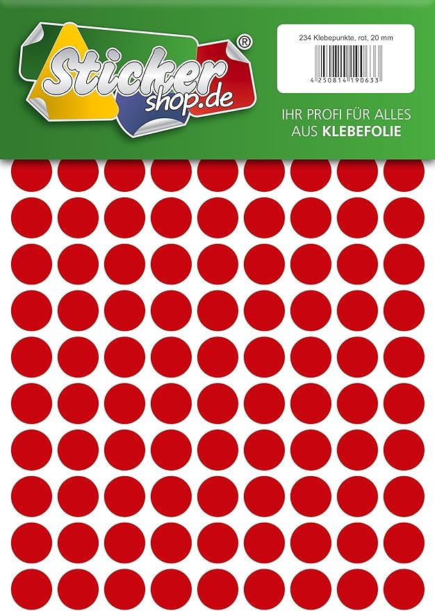 Ordnung muss sein! Diese 200 nummerierten Klebepunkte in rot (15mm Durchmesser) helfen dir beim Sortieren und Organisieren. Aus wetterfester PVC-Folie - halten drinnen und draußen. Super für Inventuren, Archivierung, Lagerorganisation oder zum Beschriften von Gegenständen. Zahlen 1-200 plus 4 Blanko-Punkte zum Selbstbeschriften. Einfach ablösen, aufkleben - fertig! Kratzfest und abwaschbar. Bring Ordnung in dein Chaos!