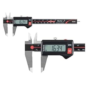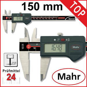 Professioneller digitaler Messschieber von Mahr! Messbereich 0-150mm mit Genauigkeit von 0,01mm. Mit eckigem Tiefenmaß und kontrastreicher Digitalanzeige.