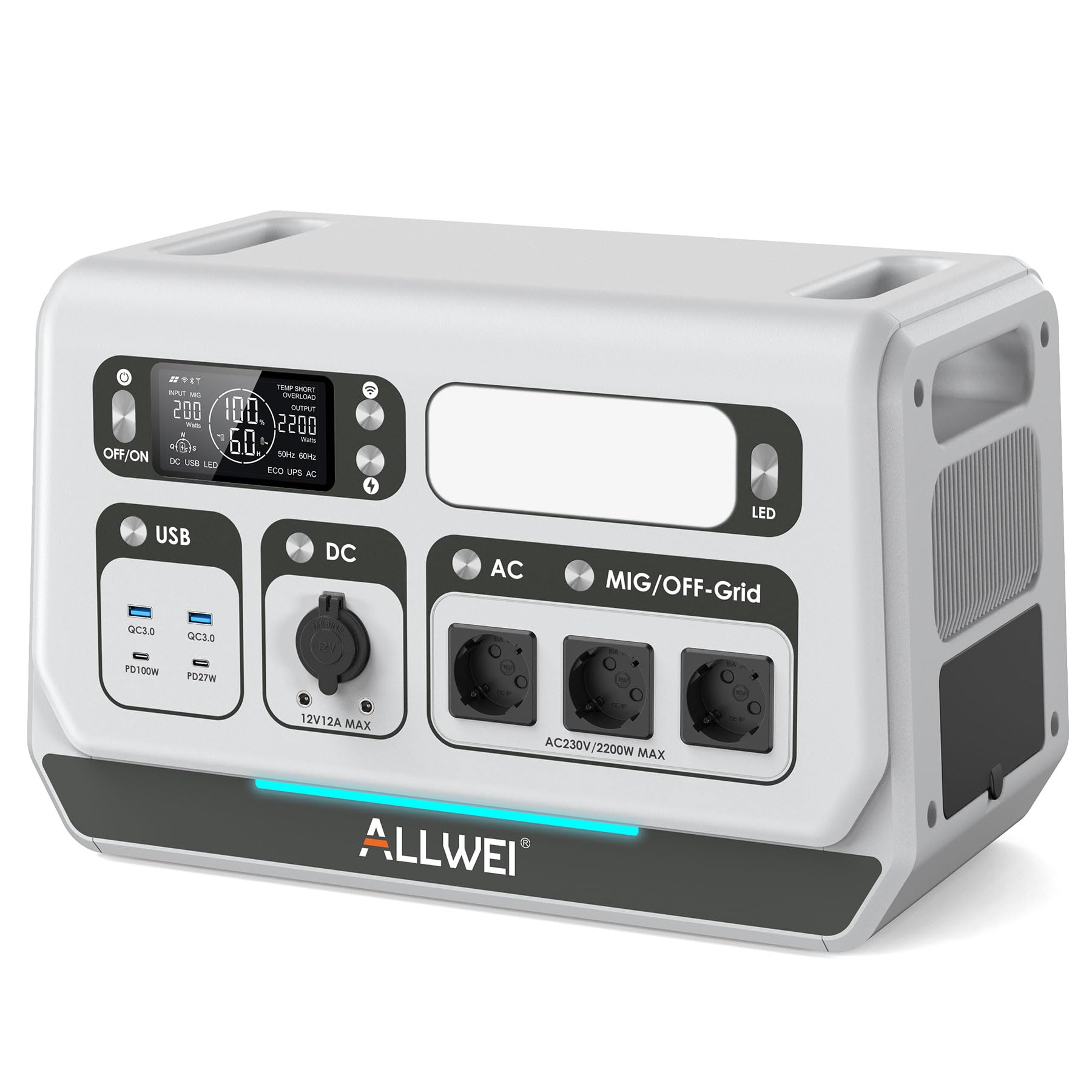 Willst du deine Stromkosten senken? Mit diesem ALLWEI Balkonkraftwerk mit integriertem Speicher produzierst du deinen eigenen Solarstrom - einfach per Plug & Play! 1600W Ausgangsleistung, 1600Wh Kapazität und erweiterbar mit 2 B160 Akkus auf 4,8kWh.