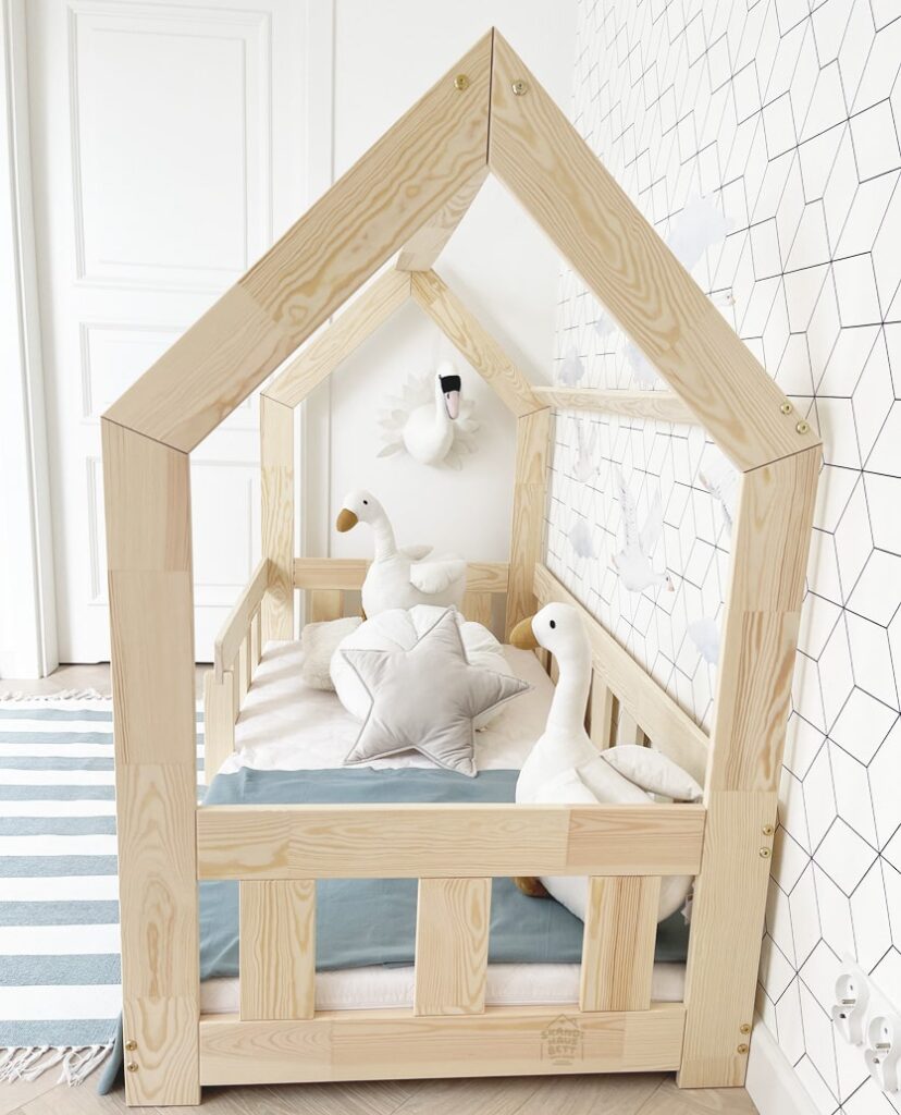 Hausbett 160x200 Mit Rausfallschutz - Kinderbett Aus Naturholz Im Skandi-Design