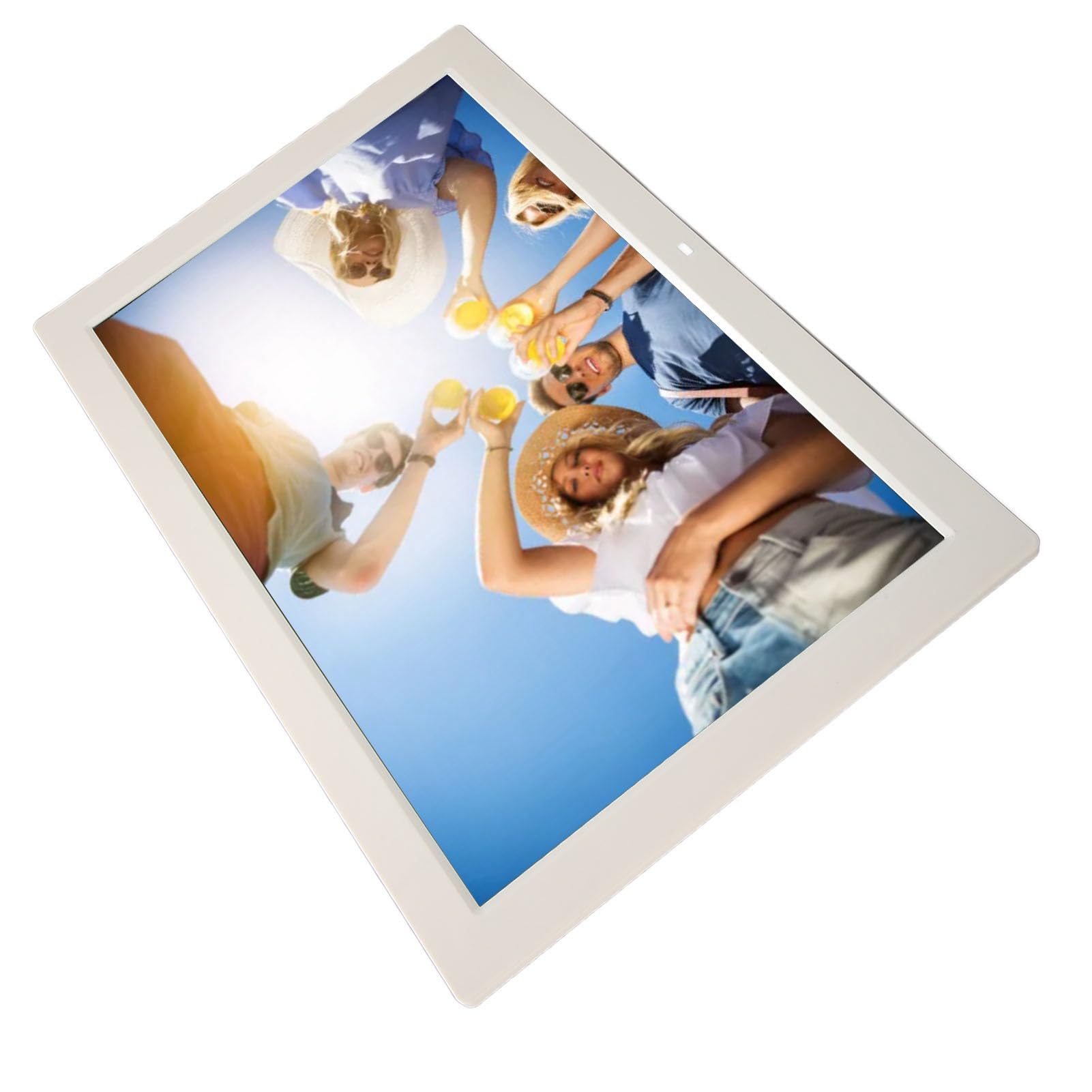 Boah, dieser digitale Bilderrahmen ist ja mal richtig smart! Mit seinem großen 17-Zoll IPS HD Touchscreen (1440 x 900 Pixel) zeigt er deine Fotos und Videos in gestochen scharfer Qualität. Der Clou: Du kannst nicht nur Bilder anzeigen, sondern auch Musik abspielen und sogar 1080p HD-Videos wiedergeben. Kein Bock auf komplizierte Apps? Kein Problem - einfach Speicherkarte oder USB-Stick reinstecken und schon läuft die Diashow. Der Rahmen unterstützt bis zu 128 GB Speicher - da passen tausende Erinnerungen rein! Besonders praktisch: Die Fernbedienung funktioniert bis zu 8 Meter entfernt, und mit der Bildvorschau findest du blitzschnell genau das Foto, das du suchst. Ob als Werbedisplay im Laden, als Familien-Fotowand in der Diele oder als praktischer Wecker mit Kalenderfunktion - dieses Multitalent macht überall eine gute Figur. Der IPS-Bildschirm bietet super Blickwinkel von 180 Grad, sodass die Bilder von überall im Raum perfekt aussehen. Helligkeit anpassen? Kein Thema! Und wenn du mal keine Lust auf Stecker hast: Der Rahmen lässt sich auch an die Wand montieren. Perfekt für alle, die ihre schönsten Momente immer im Blick haben wollen - ob Urlaubsbilder, Familienfotos oder die neuesten Videos der Kids. Einfach anschließen und sofort loslegen - simpler geht's nicht!