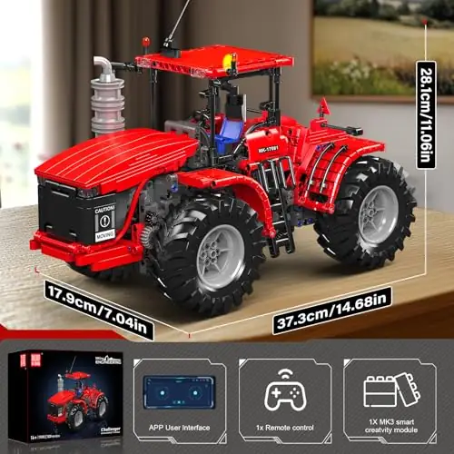 Baumaschinen-Fans aufgepasst! Dieser Mould King Technik Traktor bringt actionreichen Bauspaß für Groß und Klein. Mit über 1300 hochwertigen ABS-Bausteinen baust du einen detailgetreuen Traktor mit funktionierendem Scharnier-Lenksystem. Ausgestattet mit Motor für Vorwärts-/Rückwärtsfahrt und Lenkung - steuerbar per App auf deinem Smartphone. Das Modell verfügt über öffnenden Motorraum, realistisches Führerhaus und robuste Reifen. Die Teile kommen in nummerierten Beuteln für stressfreies Bauen. Inklusive übersichtlicher Papieranleitung. Perfekt für Kinder ab 8 Jahren, Jugendliche und Erwachsene. Kompatibel mit den meisten Marken-Bausteinen. Fördert technisches Verständnis, Feinmotorik und Kreativität. Ideal als Geschenk zu Geburtstag, Weihnachten oder einfach so. 1 Monat Geld-zurück-Garantie inklusive. Tipp: Von offenem Feuer fernhalten! Tauche ein in die Welt der Baumaschinen und erlebe Spielspaß der besonderen Art.