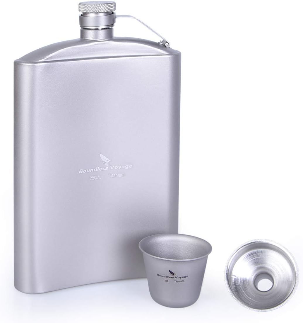 Der ultimative Begleiter für Outdoor-Abenteuer! Dieser Flachmann aus reinem Titan wiegt nur 59g und fasst trotzdem stolze 170ml. Perfekt für Jackentasche, Hose oder Rucksack - nimmt kaum Platz weg. Das Beste: Titan verfälscht nicht den Geschmack deiner Lieblings-Spirituosen!