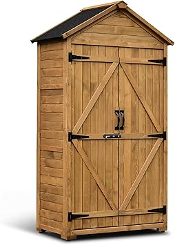 Endlich Platz für all das Gartenzeug! Dieser massive Gartenschrank ist mit 118,5x54,3x173cm richtig geräumig. Aus nachhaltigem Tannenholz gebaut, das mit wasserlöslicher Farbe behandelt ist - hält also Wind und Wetter stand. Das PVC-Satteldach leitet Regenwasser super ab und der hochgezogene Boden schützt vor Feuchtigkeit. Mit zwei Zwischenböden kannst du Gartengeräte, Spielzeug oder Werkzeug ordentlich verstauen. Das kleine Belüftungsloch verhindert Stockbildung. Perfekt für Garten, Terrasse oder Balkon. Einfach aufbauen und jahrelang Freude daran haben! Sieht nicht nur praktisch aus, sondern mit dem grünen Anstrich auch noch richtig hübsch. Dein Garten wird endlich aufgeräumt und alles hat seinen Platz!