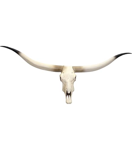 Alter, dieses Longhorn-Wanddekor ist der absolute Hammer! Stolze 178cm lang - das ist ein echter Blickfang in jedem Raum. Aus Kunstharz gegossen, sieht aus wie ein echter Stierschädel, ist aber viel leichter.