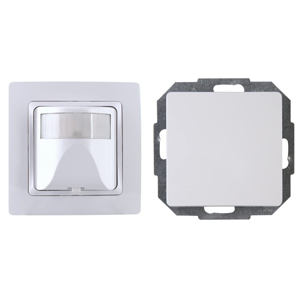 Licht an, ohne Schalter drücken zu müssen? Mit dem Kopp INFRAcontrol Bewegungsmelder klappt's! Der unterputz Melder hat 180 Grad Erfassungswinkel und erkennt Bewegung bis ca. 10 Meter. Super praktisch: Du kannst ihn auf 'permanent an', 'automatisch' oder 'permanent aus' stellen. Die Dämmerungsschwelle ist stufenlos einstellbar - das Licht geht also nur an, wenn's auch wirklich dunkel genug ist. Die Reaktionszeit lässt sich von 4 bis 240 Sekunden anpassen. Wichtig: Es ist ein 2-Draht-Gerät für ohmsche Lasten von 40-400 Watt bei 230V~, also nicht für LEDs geeignet. Das Komplettset kommt inklusive 1-fach Abdeckrahmen im Design Paris in schickem Arktis-Weiss. Perfekt für Flur, Keller oder Garage - überall dort, wo du keine Lust hast, nach dem Lichtschalter zu tappen. Einfach montieren und freuen, wenn das Licht automatisch angeht, sobald du den Raum betrittst!