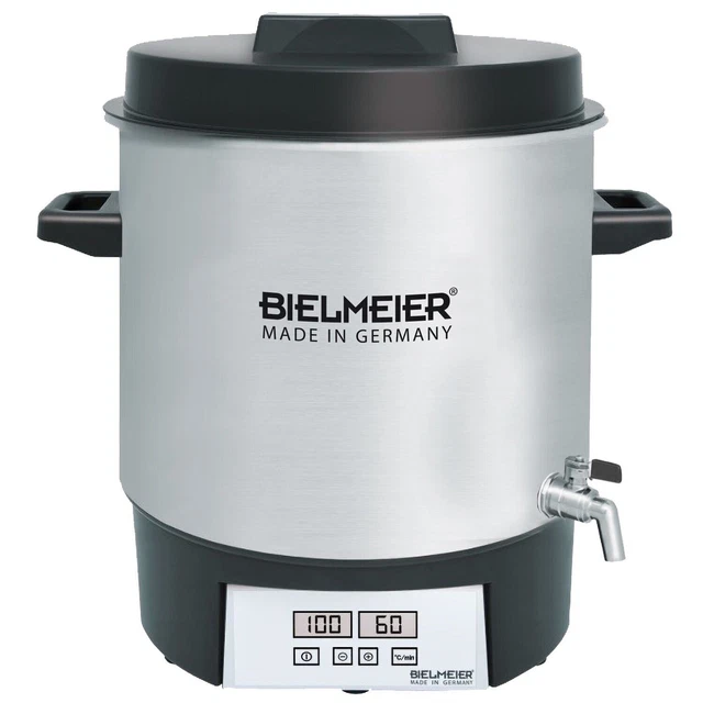 Ein echter Alleskönner für Küche und Fest! Der BIELMEIER Einkochautomat ist dein perfekter Helfer fürs Einkochen von Obst, Gemüse und Marmeladen - und im Winter für leckeren Glühwein! \\n\\nMit 29 Litern Inhalt und 1800 Watt Leistung meisterst du große Mengen problemlos. Der Edelstahltopf ist super robust und pflegeleicht, der integrierte Auslaufhahn macht das Abfüllen zum Kinderspiel. \\n\\nDer Präzisionsthermostat hält die Temperatur konstant, Überhitzungsschutz ist natürlich auch dabei. Perfekt für Familien, Hobbyköche oder wenn du mal eine Party schmeißt! \\n\\n• 29 Liter Edelstahl • 1800 Watt • Mit Auslaufhahn 3/4\\\ • Temperaturregler • Überhitzungsschutz • Made in Germany • Für Einkochen & Glühwein