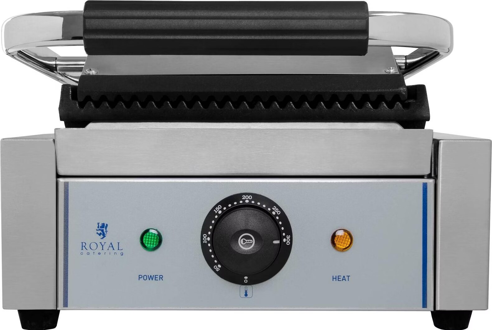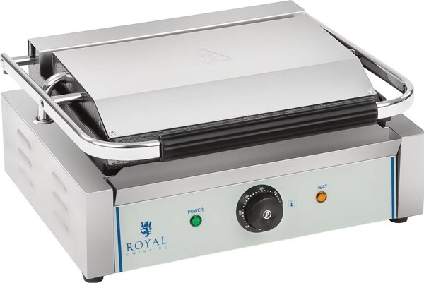 Grill-Profi gesucht? Dieser Royal Catering Kontaktgrill ist ein absoluter Power-Grill für deine Küche! Mit stolzen 1800 Watt Leistung heizt er sich blitzschnell auf und grillt beidseitig gleichzeitig - dein Burger ist in Rekordzeit perfekt durchgegrillt! Die geriffelten Gusseisen-Platten (je 23x22 cm) geben deinem Fleisch diese typischen Grillstreifen und sorgen für gleichmäßige Hitzeverteilung. Temperatur von 50-300°C genau einstellbar und das Thermostat hält sie konstant. Aus robustem Edelstahl gefertigt - super hygienisch und super langlebig! Die herausnehmbare Fettauffangschale macht die Reinigung zum Kinderspiel. Perfekt für Burger, Steaks, Sandwiches oder Gemüse. Ob für deine Gastro-Küche oder den anspruchsvollen Heimgebrauch - dieser Grill meistert alles! Mit 1,5m Kabel und inklusive Reinigungsbürste.