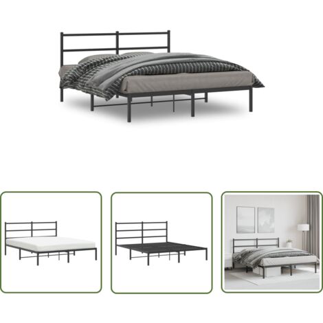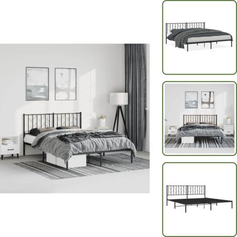 Lutown Teen Doppelbett 180x200 Mit Stauraum - Metallbett Mit Gebogenem Kopfteil In Schwarz/Weiß