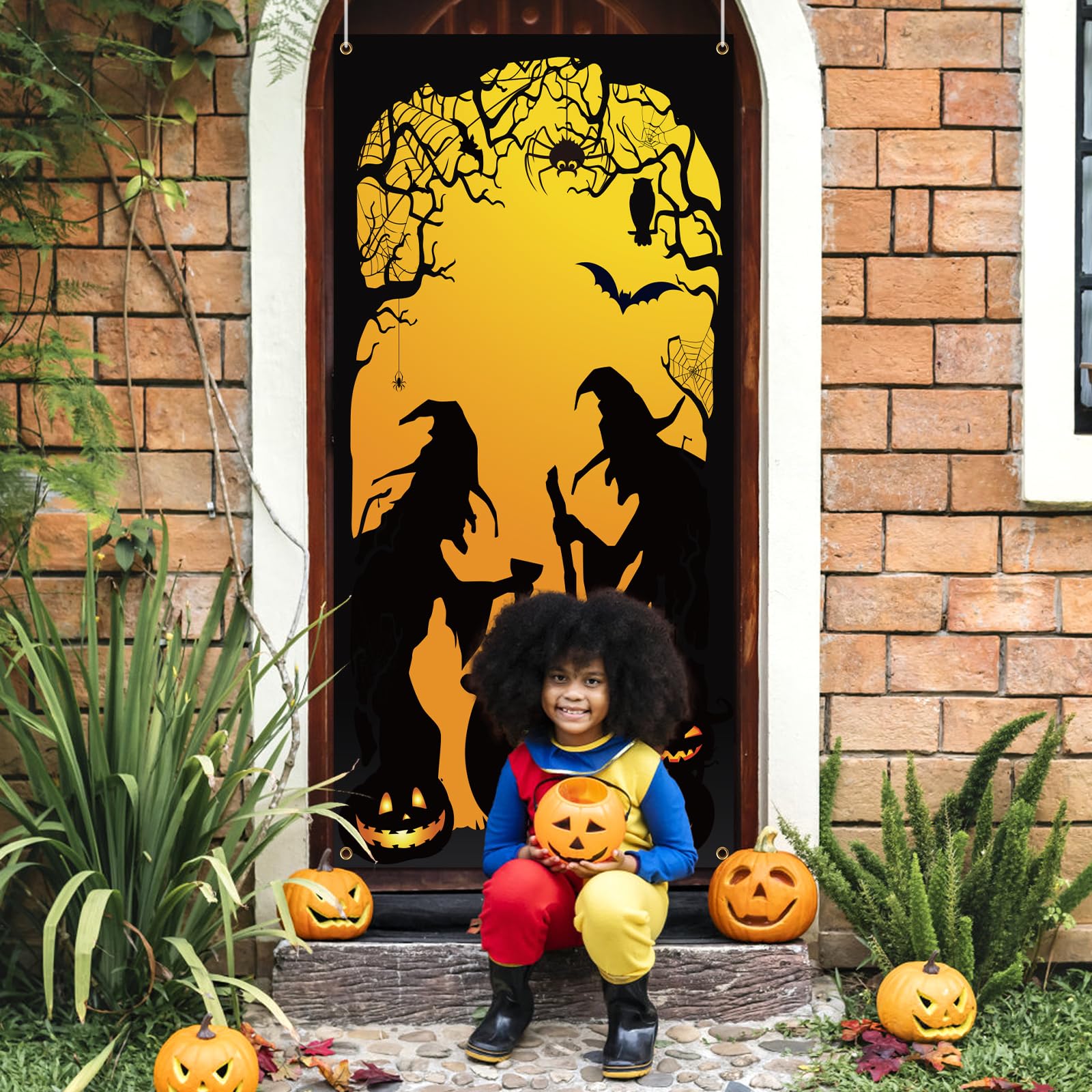 Halloween Türbanner 180x90cm - Gruselige Hexe Mit Skelett, Wetterfest