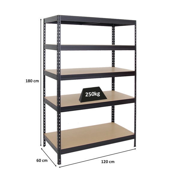 Schwerlastregal Yukon 180x90x60cm - 4 Etagen Schwarz