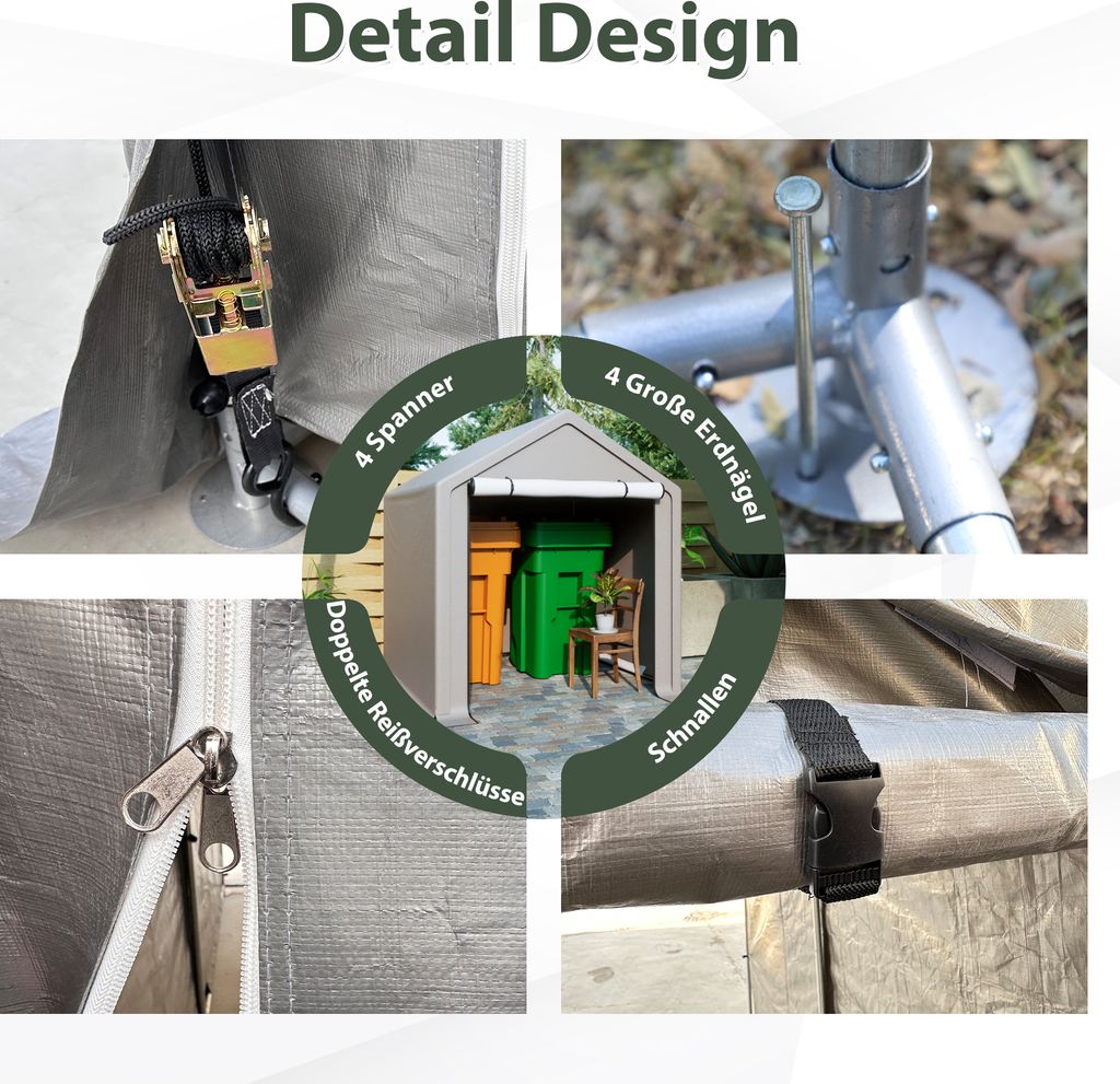 Boah, dieses VEVOR Gerätehaus ist ja mal richtig praktisch! Mit 183x244x213 cm bietet es mega viel Platz für Fahrräder, Motorräder, Rasenmäher und Gartengeräte. Das PE-Vordach ist doppelseitig beschichtet - hält Regen, Schnee und UV-Strahlung stand. Der Rahmen aus 38 mm verzinkten Stahlrohren ist super stabil und rostfrei. Die Rolltür mit Reißverschluss ist genial - einfach hochschieben und du kommst an deine Sachen ran. Montage? Total easy mit den Schnallenverbindungen, kein Werkzeug nötig! Die Stahlrohre steckst du einfach zusammen, die Anleitung erklärt Schritt für Schritt wie's geht. Perfekt für Garten, Terrasse oder Hof - deine Geräte sind immer trocken und sicher untergebracht. Einfach aufbauen und sich über den ganzen Stauraum freuen!