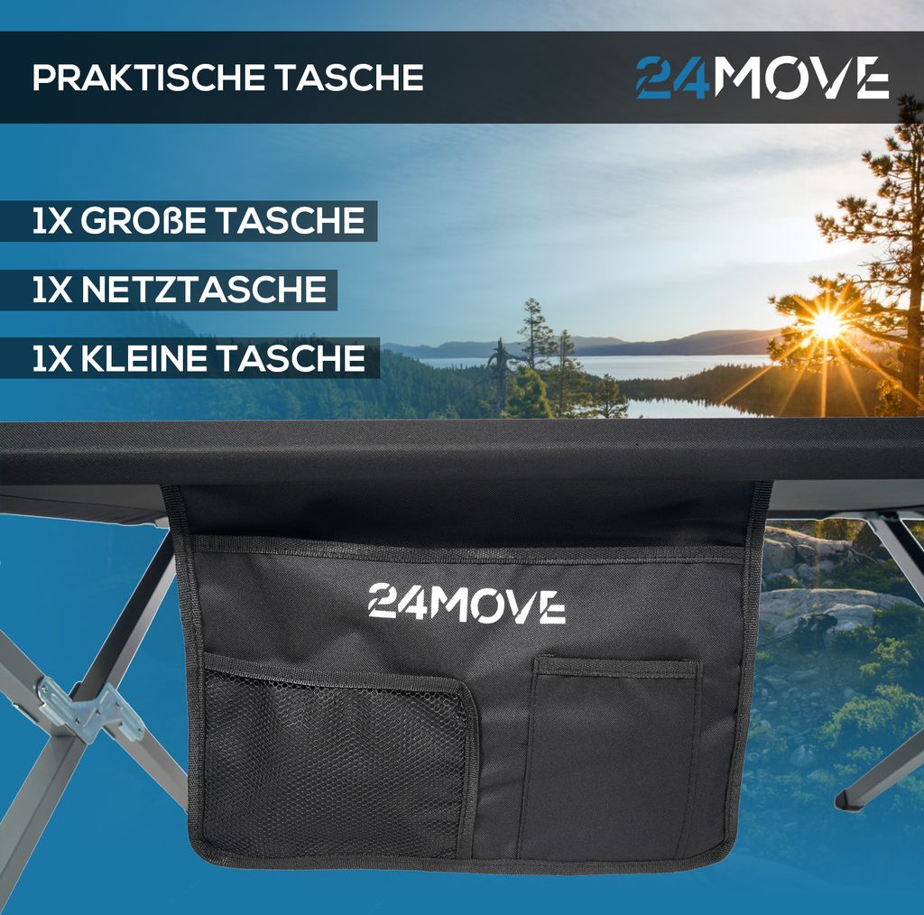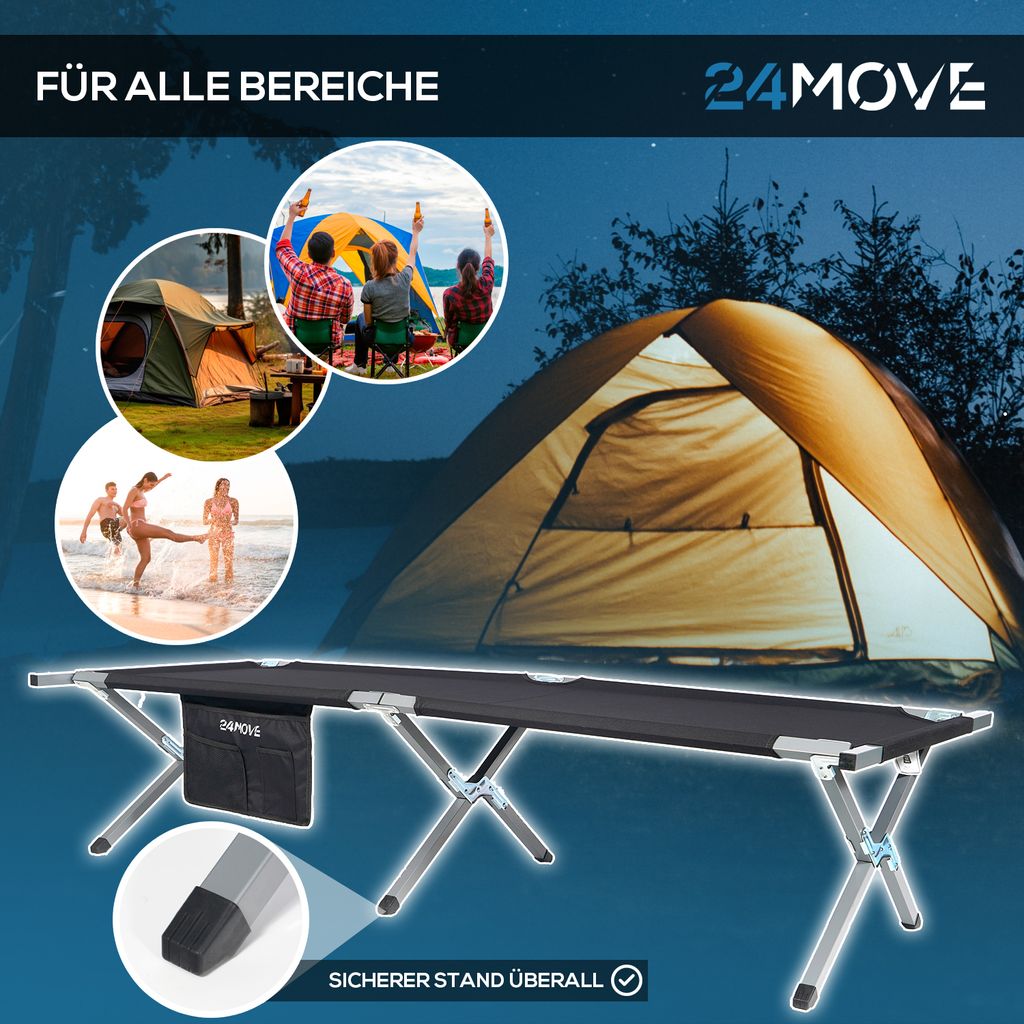• 24MOVE Feldbett Campingbett | 190x67cm | Bis 150kg | Faltbar Mit Tragetasche