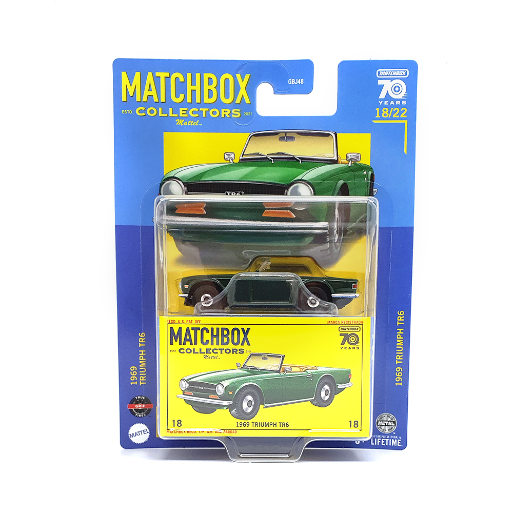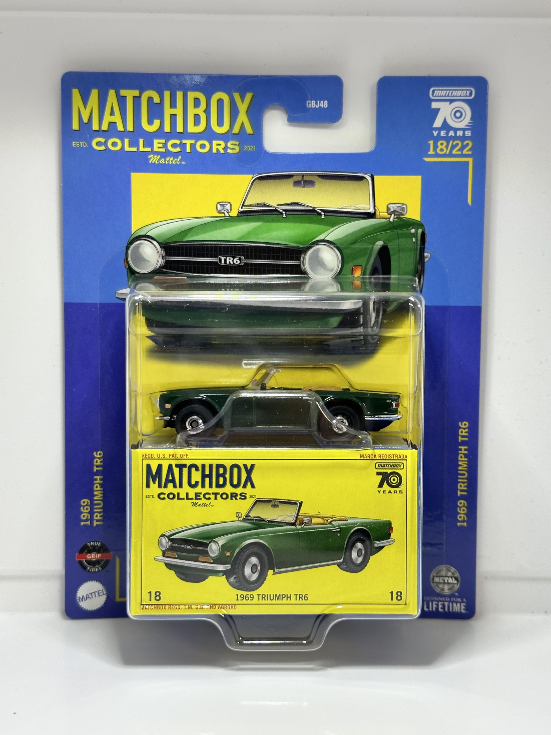Für alle Auto-Fans und Sammler! Dieses original Matchbox Modell des Triumph TR6 aus dem Jahr 1969 ist ein absoluter Klassiker. In satten Grün lackiert, detailgetreu verarbeitet und ein echter Hingucker in jeder Vitrine. Das Besondere: Es handelt sich um die limitierte Sammler-Edition 18/22 - also schnell zugreifen! Hergestellt in Thailand unter den hohen Qualitätsstandards von Matchbox. Perfekt für Erwachsene, die ihre Sammlung erweitern möchten, oder für Kinder, die damit spielen wollen. Der Triumph TR6 war ja schon immer ein Traumauto - und jetzt kannst du ihn im Miniaturformat besitzen. Ob als Geschenk für Auto-Enthusiasten, als Ergänzung deiner eigenen Sammlung oder einfach als Deko-Stück fürs Regal - dieses Modellauto begeistert einfach jeden. Die Verarbeitung ist typisch Matchbox: Stabil, mit rollenden Rädern und liebevollen Details. Ein Stück Automobilgeschichte für die eigenen vier Wände!