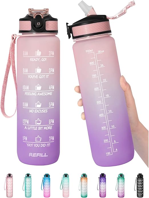 Trink mehr Wasser - ganz easy! Diese stylische Sportflasche von MHwan erinnert dich mit ihrer cleveren Zeitmarkierung daran, über den Tag verteilt genug zu trinken. 1 Liter Fassungsvermögen reicht für Schule, Büro oder Sport. Total praktisch: Der One-Touch-Deckel öffnet sich mit nur einem Handgriff - perfekt beim Joggen oder im Fitnessstudio. Aus 100% BPA-freiem Material, ohne komischen Plastikgeschmack. Die robuste Flasche hält was aus und läuft garantiert nicht aus - selbst wenn sie im Rucksack umherpurzelt. Die lebensmittelechte Silikondichtung hält alles sicher verschlossen. Reinigen ist super einfach: Einfach auseinandernehmen und in die Spülmaschine stecken (nur niedrige Temperatur!). Der ergonomische Griff liegt super in der Hand. Mit dieser Flasche machst du nicht nur was für deine Gesundheit, sondern auch für die Umwelt - weg mit Einwegflaschen! Hol dir deinen täglichen Hydrations-Buddy!