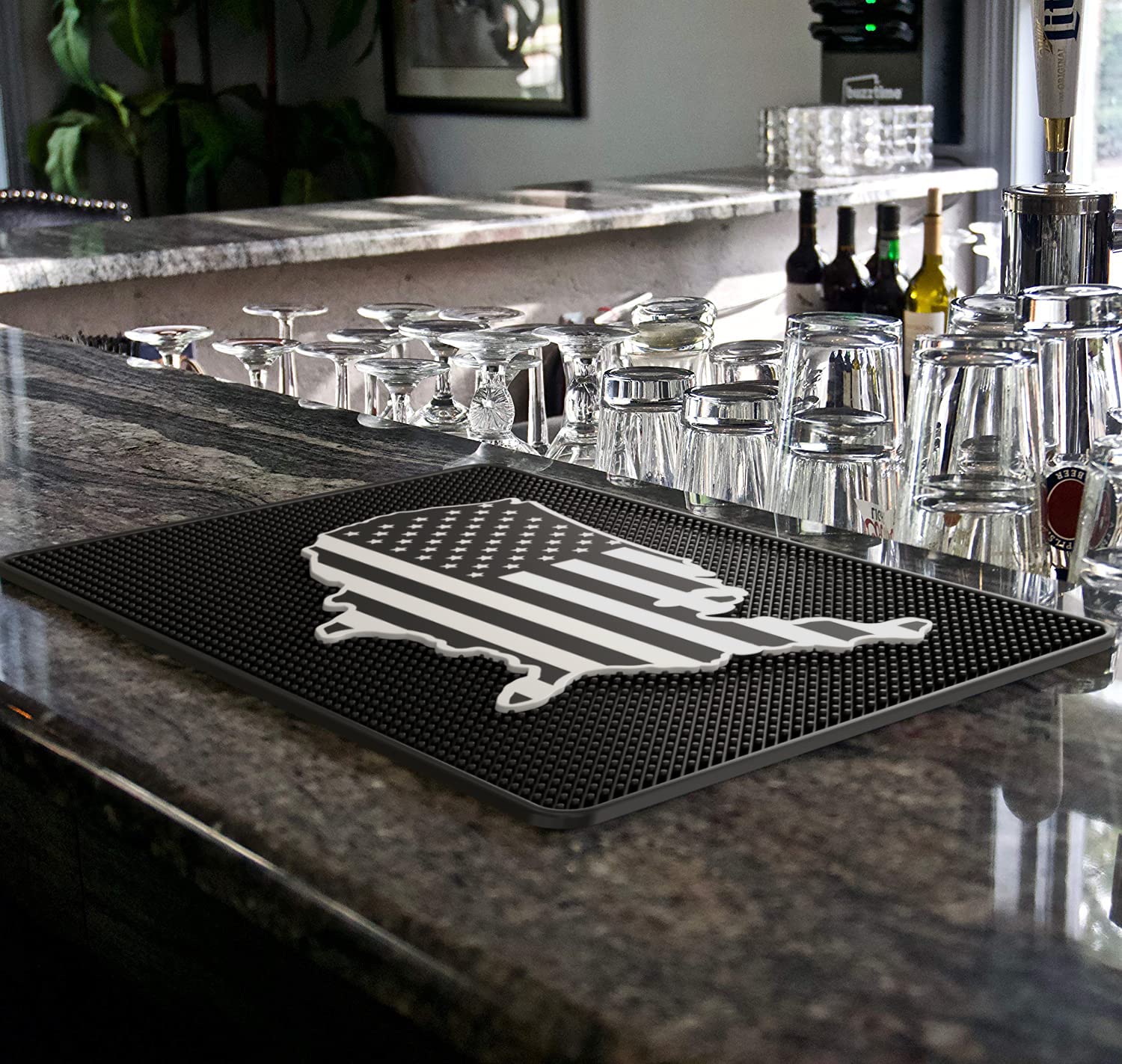 Die perfekte Matte für deine Home-Bar oder dein Café! Mit 45x30 cm Größe und 1 cm Dicke bietet diese Highball & Chaser Barmatte optimalen Schutz für deine Theke. Die dicken elliptischen Zinken stabilisieren Gläser sicher und sehen dabei noch stylisch aus. Aus strapazierfähigem, flexiblem Gummi gefertigt, der verschüttete Flüssigkeiten zuverlässig auffängt. Rutschfest und ungiftig - ideal für den Einsatz mit Lebensmitteln. Einfach in der Spülmaschine zu reinigen (oberster Rost!) oder mit Wasser und Seife abzuspülen. Der dezente weiße Rand gibt der Matte einen modernen Look. Schütze deine Möbel vor Kratzern, Flecken und Feuchtigkeit - diese Matte hält, was sie verspricht!