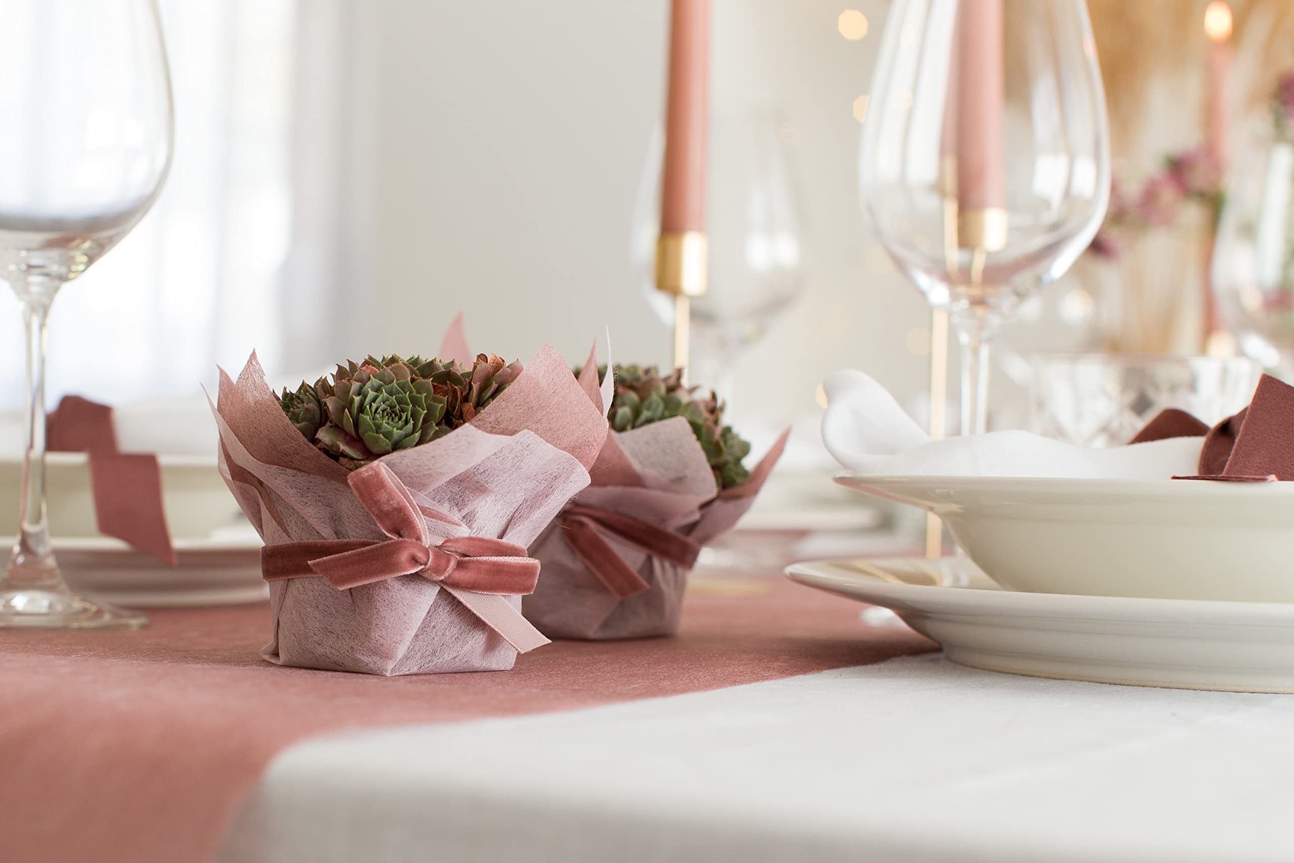 Dieses wunderschöne Samtband in zartem Altrosa veredelt jedes Geschenk und jede Deko! Aus weichem Samtstoff mit zart schimmerndem Glanz fühlt es sich nicht nur edel an, sondern sieht auch einfach traumhaft aus.\\n\\nMit 10 Metern Länge und 1cm Breite hast du genug Material für viele kreative Projekte:\\n• Besondere Geschenke stilvoll verpacken\\n• Hochzeitseinladungen und Tischkarten verzieren\\n• Tischdekoration für Festlichkeiten\\n• Blumengestecke und Vasen schmücken\\n• DIY-Schmuck und Anhänger basteln\\n\\nDas Band ist vielseitig kombinierbar und passt zu:\\n• Rustikalen und natürlichen Deko-Themen\\n• Eleganten und modernen Arrangements\\n• Romantischen Hochzeitsdekorationen\\n• Festlicher Weihnachts- und Winterdekoration\\n\\nTipp: Verwende eine Stoffschere für saubere Schnittkanten! Das Band lässt sich wunderbar mit anderen 100%Mosel Produkten kombinieren - zum Beispiel mit dem passenden Tischläufer in Samtoptik.\\n\\n100%Mosel steht für Qualität aus dem Herzen der Moselregion. Ein Familienunternehmen, das besonderen Wert auf ausgesuchte Materialien und perfekte Verarbeitung legt.\\n\\nOb für private Feiern, Hochzeiten oder einfach um sich selbst eine Freude zu machen - dieses Samtband bringt Eleganz und Gemütlichkeit in dein Zuhause!