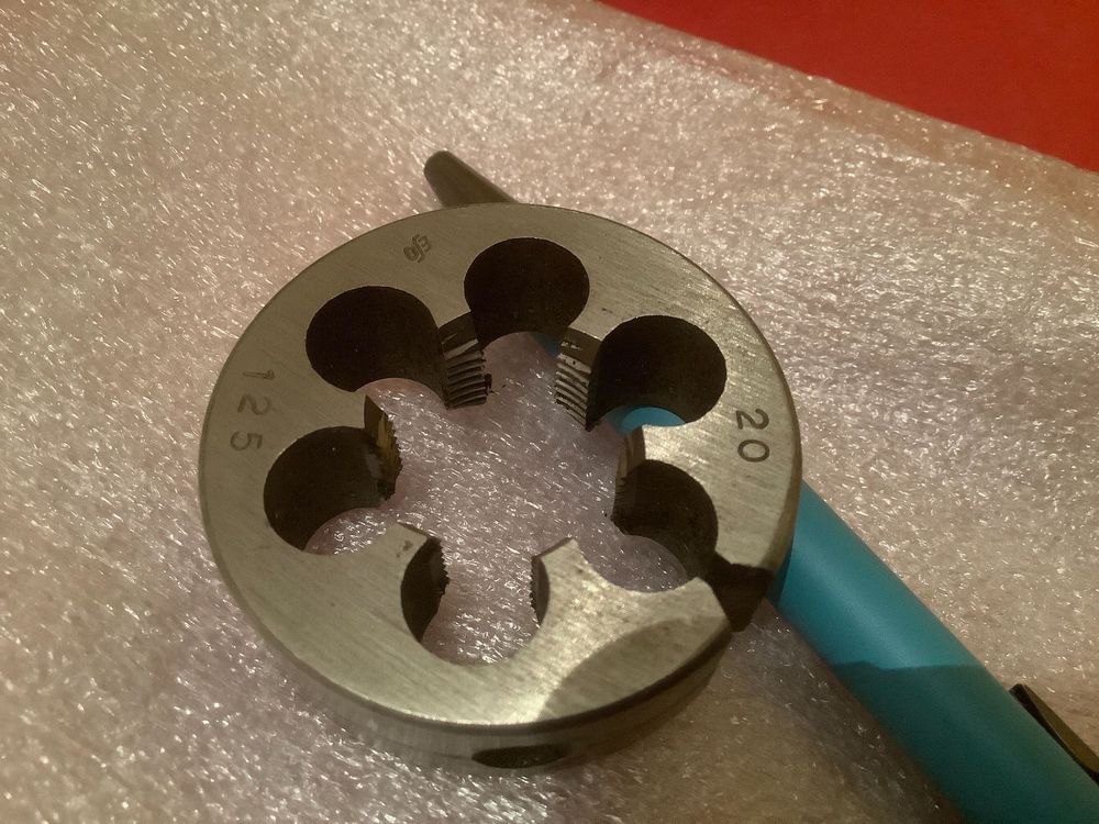 Hey, für alle Heimwerker und Profis - dieses Schneideisen von PAULIMOT ist genau das Richtige, wenn du metrische Gewinde schneiden willst! Speziell für M6-Gewinde mit 1mm Steigung gemacht. Das Besondere: Es ist aus High-Speed-Stahl (HSS) und mit Titannitrid beschichtet - das hält ewig und du kannst damit richtig viele Gewinde schneiden, ohne dass es stumpf wird! Mit 20mm Durchmesser und 7mm Dicke passt es perfekt in jeden normalen Schneideisenhalter. Nach DIN 223 gefertigt und in Toleranzklasse 6g - das ist richtig präzise Arbeit! Die kegelförmigen Vertiefungen am Rand sorgen dafür, dass es sicher im Halter sitzt und nicht verrutscht. Ob du jetzt an Maschinen, Fahrrädern oder anderen Projekten arbeitest - mit diesem Qualitäts-Schneideisen bekommst du saubere, präzise Gewinde hin. Einfach ins Werkstück drehen und schon hast du ein perfektes Gewinde! Ein Muss in jeder Werkstatt!