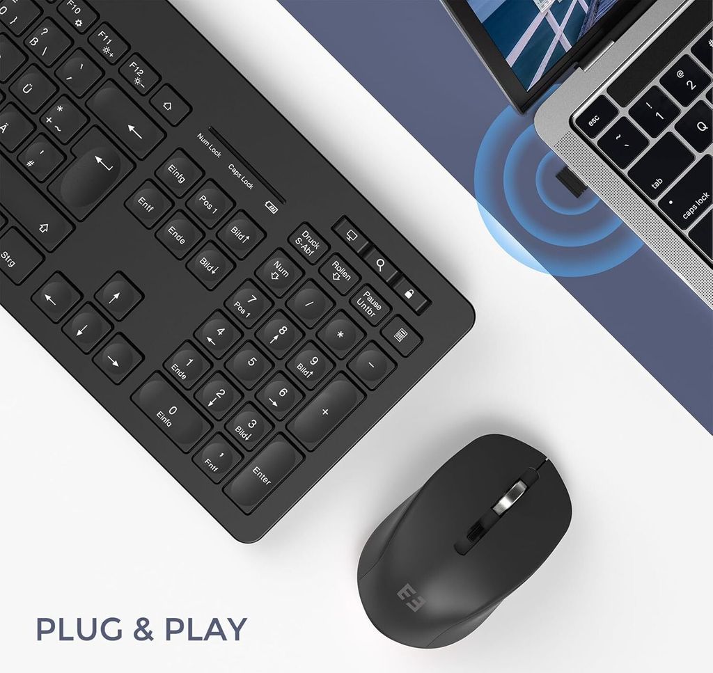 Total süß in Pink! Dieses kabellose Tastatur-Maus-Set verbindet sich per 2.4GHz mit deinem PC, Laptop oder iPad. Mit 104 runden Tasten für angenehmes Tippgefühl und leiser Maus. Reichweite bis 10 Meter - perfekt für Home Office oder Wohnzimmer. Energiesparend mit AA-Batterien (nicht inklusive). Super tragbar und stylisch. Einfach USB-Empfänger einstecken und loslegen. Mach deinen Arbeitsplatz farbenfroh und effizient!
