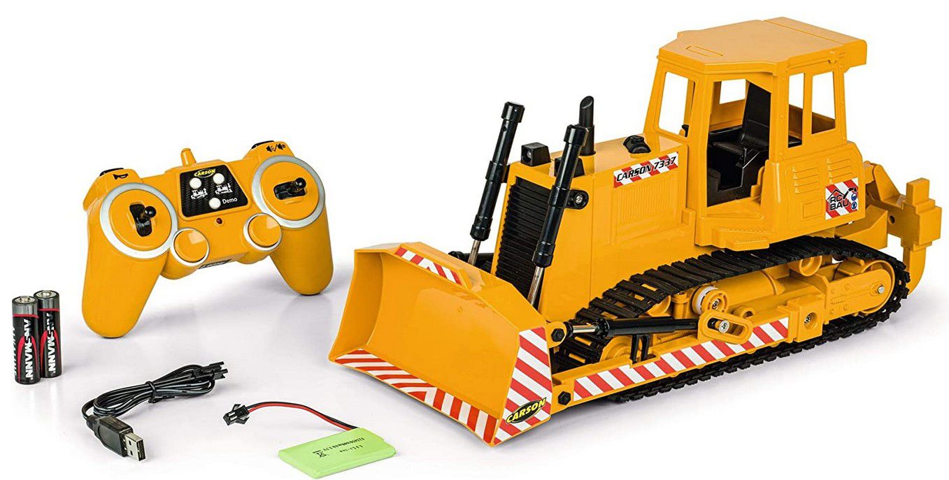 Baustellen-Fans aufgepasst! Dieser ferngesteuerte Bulldozer bringt Action ins Kinderzimmer! Mit 2.4GHz Fernsteuerung und 9 Kanälen für super präzise Steuerung. Der hydraulische Arm bewegt sich super realistisch und die LED-Beleuchtung macht auch Nachtfahrten möglich! Mit zwei starken 600mAh Batterien für extra lange Spielzeit. Das coole Teil fährt auf allen Untergründen - ob Teppich, Parkett oder im Sandkasten. Die robuste Verarbeitung hält auch mal einen Zusammenstoß aus. Perfekt für kleine Baustellen-Chefs ab 3 Jahren! Inklusive Ladekabel und Schraubenzieher. Einfach aufladen und losfahren! Das ideale Geschenk für Geburtstage oder einfach so. Dein Kind wird begeistert sein von den vielen Funktionen und dem realistischen Spielspaß!