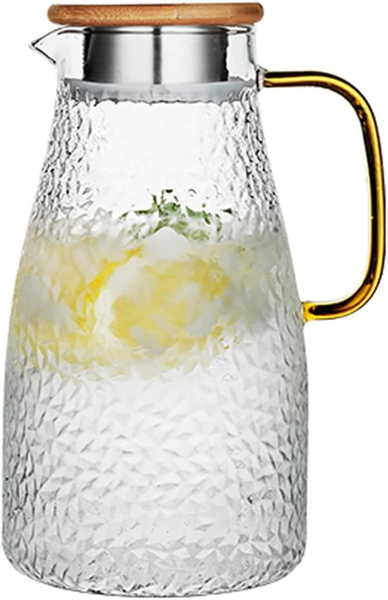 Dieser elegante Glaswasserkrug ist ein echter Alleskönner in der Küche! Aus robustem Borosilikatglas gefertigt, hält er Temperaturen von -20°C bis 150°C problemlos stand. Perfekt also für eiskalte Getränke aus dem Kühlschrank oder heißen Tee direkt vom Herd. Der praktische Filtereinsatz hält Teeblätter und Fruchtstücke zurück, während der Edelstahldeckel mit Silikondichtung alles frisch hält. Mit 2,5 Liter Fassungsvermögen ist der Krug ideal für Familien oder Gäste. Spülmaschinenfest und ohne schädliche Stoffe - so macht Trinken Spaß! Ob für Wasser, Eistee, Cocktails oder Saft - dieser Krug ist immer die richtige Wahl. Ein echter Hingucker auf jedem Tisch!