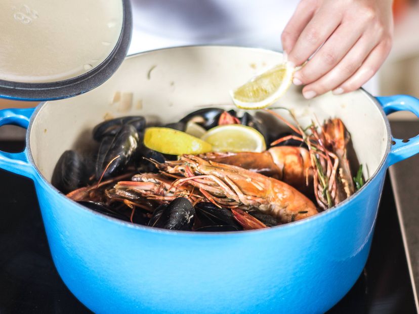 Dieser Outset Gusseisentopf ist ein Traum für alle Meeresfrüchte-Fans! Mit 2,5 Liter Fassungsvermögen und integrierter Trennwand zum Abschöpfen der Brühe macht das Kochen von Muscheln, Shrimps und Co. richtig Spaß. Der Deckel mit Akazienholz-Griff kann umgedreht werden und dient dann als Schale für leere Muschelschalen - genial praktisch! Ofenfest bis 205°C und geeignet für Herd, Grill und Ofen. Bereits eingebrannt und sofort einsatzbereit. Die übergroßen Griffe sorgen für sicheres Handling. Perfekt für Bouillabaisse, Cioppino oder einfach nur leckere Muscheln in Weißweinsauce!