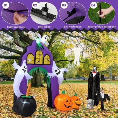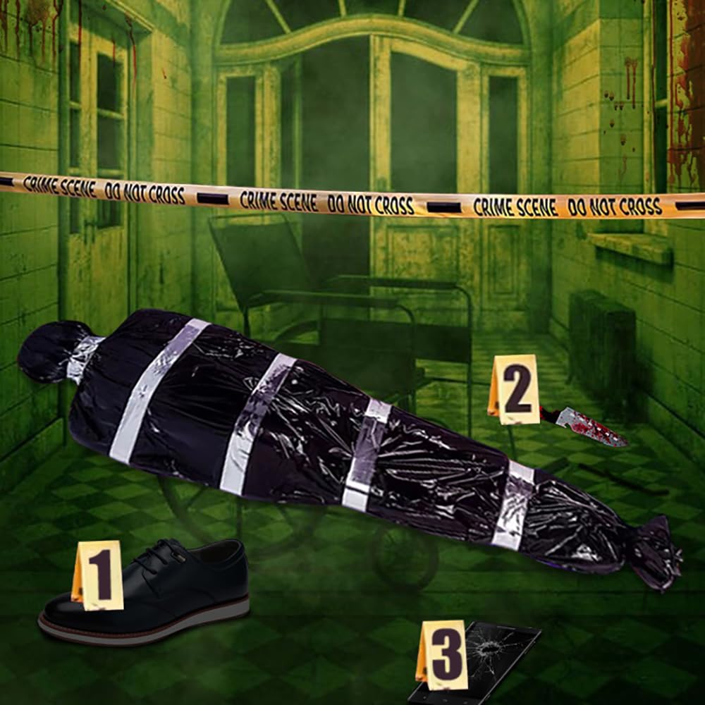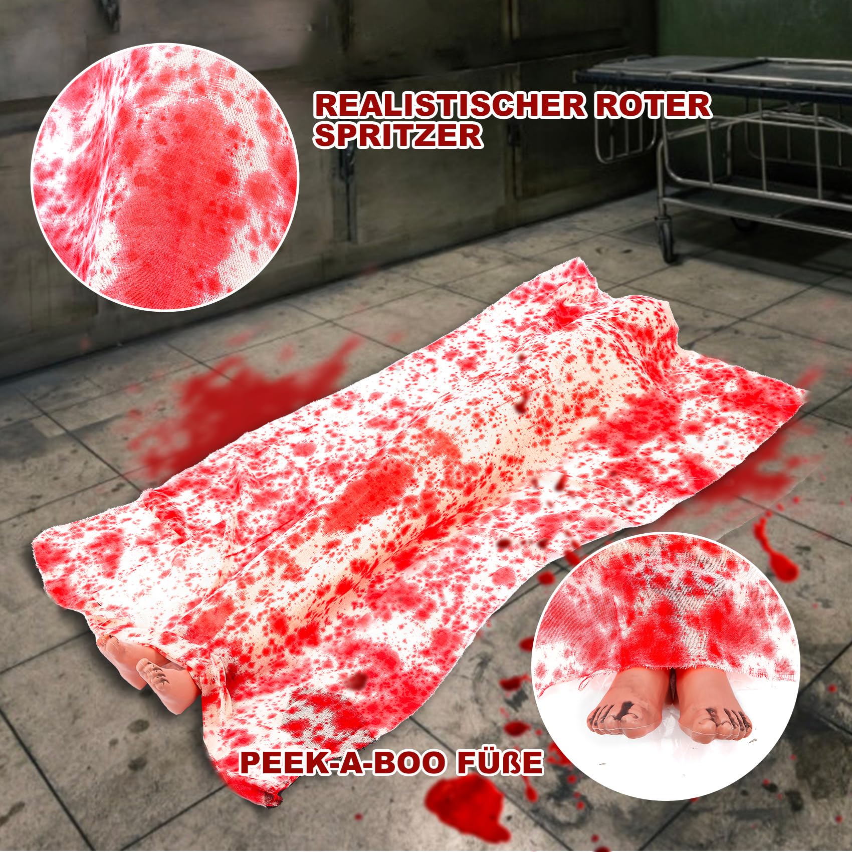 Boom! Mach dein Haus zur gruseligsten Adresse der Stadt mit diesem mega-coolen Halloween-Set! \\n\\nIm Paket findest du alles, was du für die ultimative Grusel-Party brauchst: \\n- 2 aufblasbare Horror-Leichen \\n- Schwarze Plastiktüten \\n- Bluttuch für den Extra-Creep-Faktor \\n- Spinnennetz für gruselige Ecken \\n- Warnband und Reflektorband \\n- Hanfseil zum Befestigen \\n- Praktische Luftpumpe \\n\\nEinfach aufblasen, mit den Bändern und dem Seil befestigen - und schon hast du eine professionelle Horror-Szene! Perfekt für Garten, Terrasse, Fenster oder Partyraum. \\n\\nDie Puppen sehen ultra-realistisch aus und machen selbst hartgesottene Besucher nervös. Kombiniere sie mit dem Spinnennetz und dem Warnband für den maximalen Grusel-Effekt! \\n\\nNach Halloween einfach die Luft rauslassen und platzsparend verstauen. Die stabilen Materialien halten mehrere Jahre - perfekt für die nächste Grusel-Saison! \\n\\nOb für die eigene Halloween-Party oder einfach um die Nachbarn zu erschrecken - dieses Set macht richtig Laune! \\n\\nWarnung: Kann bei empfindlichen Personen zu Gänsehaut und lautem Aufschreien führen!