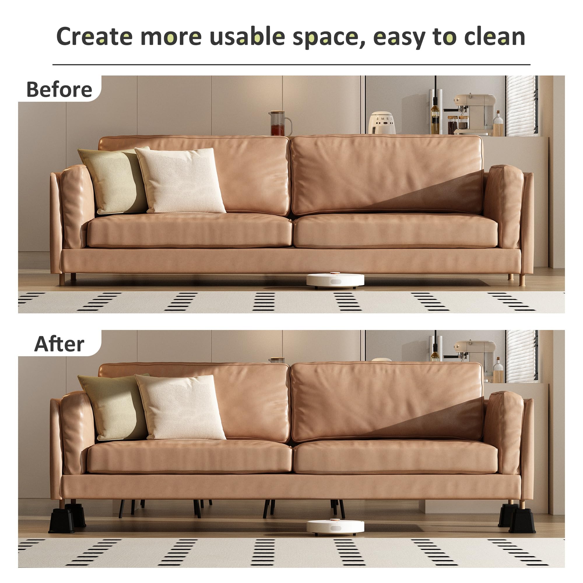 Willst du mehr Stauraum unter deinen Möbeln oder einfach alles etwas höher haben? Die Lutown-Teen Möbelerhöhungen sind deine Lösung! Dieses Set mit 6 Stück in Schwarz hebt deine Möbel um 10.2 cm an - perfekt für Sofas, Betten, Tische oder Stühle. Jeder Block misst 16x16x10.2 cm und passt für Möbelbeine bis 7.1 cm Dicke. Aus robustem Kunststoff tragen sie zusammen satte 680 kg - super stabil also! Das schlichte Design fügt sich unauffällig in jede Einrichtung ein. Du gewinnst nicht nur Platz für Staubsauger-Roboter oder Aufbewahrung, sondern schonst auch deinen Rücken: Die Erhöhung macht das Aufstehen vom Bett oder Sofa leichter, besonders bei Rückenproblemen. Einfach unter die Möbelbeine schieben, und schon sieht dein Zuhause aufgeräumter aus und ist leichter zu reinigen. Praktisch, unkompliziert und so nützlich - probier's aus!