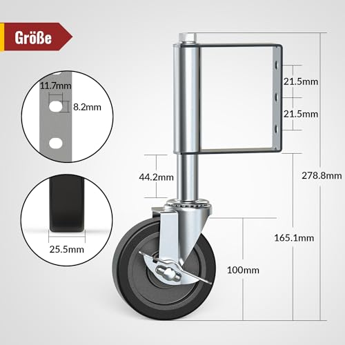 Damit dein Tor endlich leichtläuft! Dieses robuste Torrad mit 15,2 cm Durchmesser trägt bis zu 227 kg und ist perfekt für Holz- und Metalltore. Das federbelastete Design gleicht Unebenheiten im Boden aus - ob auf Gras, Beton oder Sand. Die 360-Grad-Drehung ermöglicht einfaches Schieben in jede Richtung. Rostbeständige Beschichtung für langjährigen Outdoor-Einsatz. Für Links- und Rechtsöffnende Tore geeignet. Einfach montieren und sich über das leichtgängige Tor freuen. Perfekt für Hoftore, Garagentore oder Gartentore!