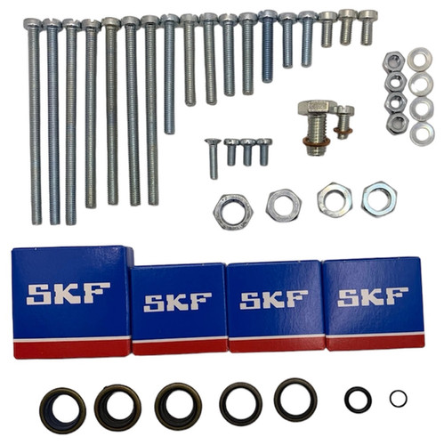 Alter Sachs-Motor undichte? Dieser Dichtsatz bringt deinen Hercules Optima oder Sachs 505/2 DY Motor wieder dicht! Im Set ist wirklich alles drin, was du für eine komplette Abdichtung brauchst: Dichtungen aus hochwertigem Papierdichtmittel, verschiedene Wellendichtringe (16x24x3mm, 15x30x5mm, 15x35x9mm, 15x32x5,5mm), Gummi-Dichtringe in verschiedenen Größen, sogar ein Kupferdichtring M10. Dazu kommen noch qualitative SKF-Kugellager Typ 6202C3, ein Nadellager und ein 32-teiliges Schraubenset. Als Bonus ist noch ein Vergaserreparatursatz für Bing Typ 85/10/, 85/12/ und 85/13/ Vergaser mit dabei. Alles in einer Packung - kein langes Suchen mehr nach Einzelteilen. Mach deinen Motor wieder fit für die Straße!