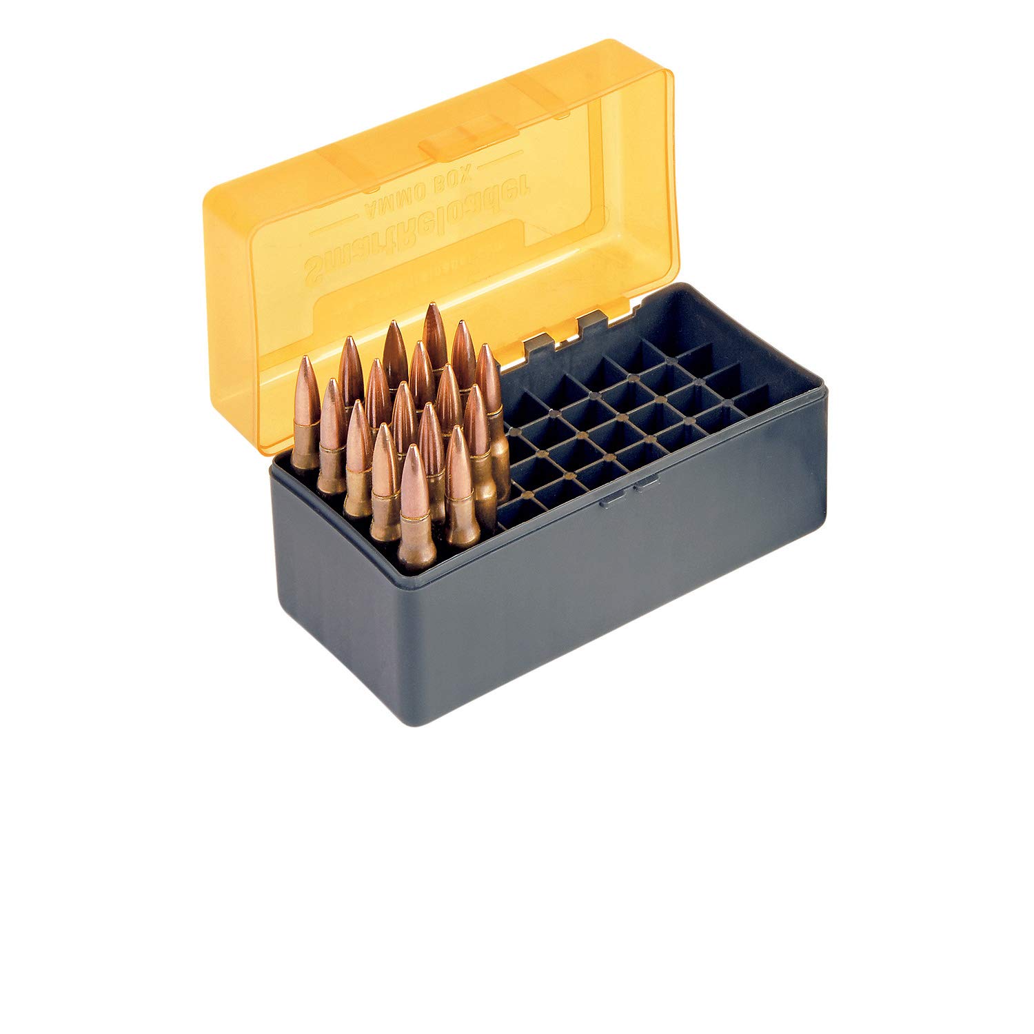 Ordnung und Sicherheit für deine Munition! Diese praktischen Patronenbehälter von SMARTRELOADER halten deine .44 Magnum, .44 Special, .41 Magnum und .45 Colt Patronen sicher verwahrt. Jede Box bietet Platz für 100 Stück - perfekt für Schießstand oder Jagd. 🔫\n\nDurchscheinender oranger Deckel und anthrazitfarbene Basis - so behältst du immer den Überblick über deinen Munitionsvorrat. Die Boxen sind durch starke Scharniere verbunden und öffnen sich leicht, bleiben aber zuverlässig geschlossen.\n\nSuper praktisch: Die Behälter sind stapelbar mit anderen Boxen der gleichen Marke. So sparst du Platz und hast alles immer griffbereit. Robuste Kunststoffkonstruktion - langlebig und bruchsicher.\n\nPerfekt für Wiederlader oder alle, die Wert auf ordentliche Aufbewahrung legen. Einfach bestellen und deine Munition sicher und organisiert aufbewahren - kein Suchen und Sortieren mehr!