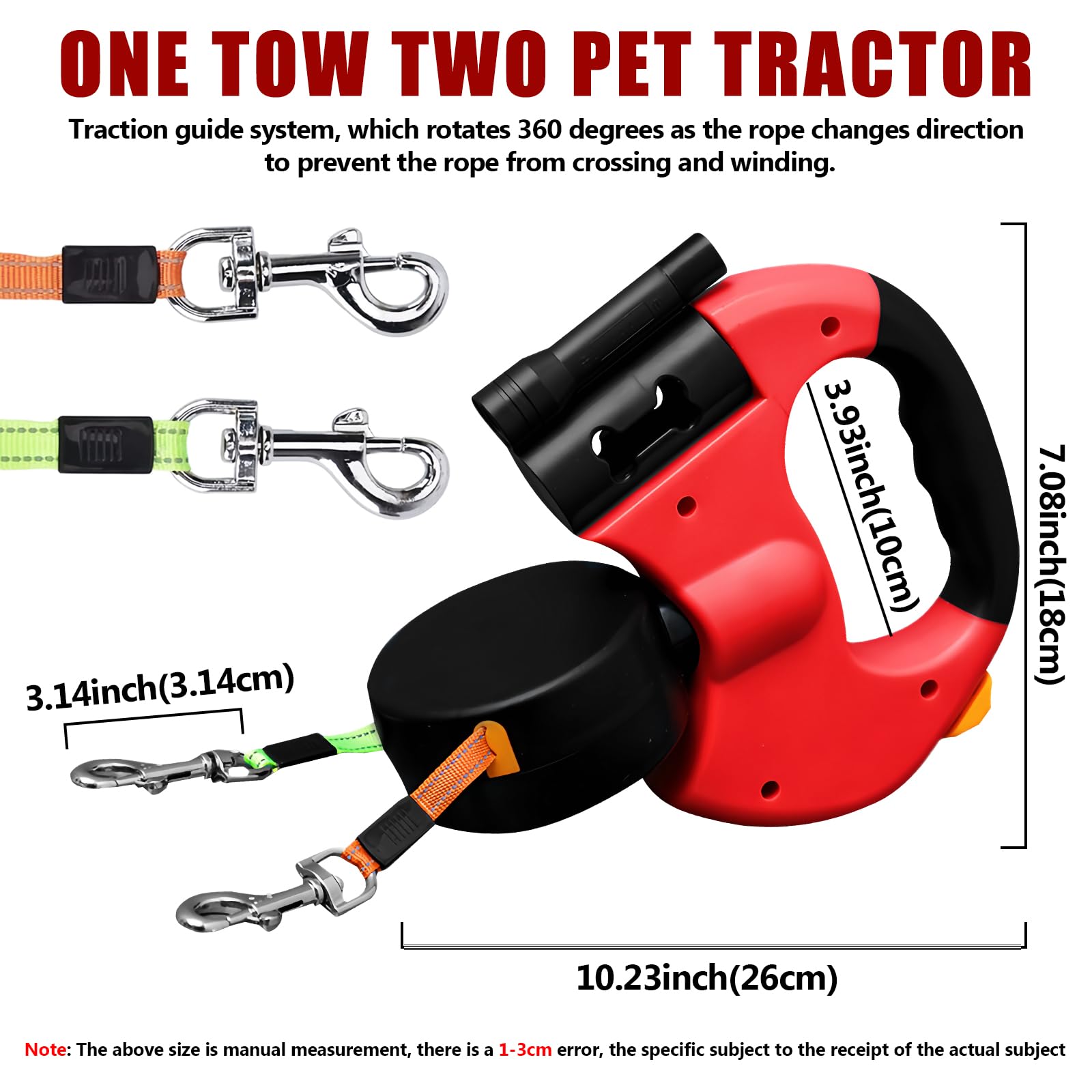• Einziehbare Doppelleine Für 2 Hunde - 10 Fuß Mit Reflektor & Müllbeutelspender