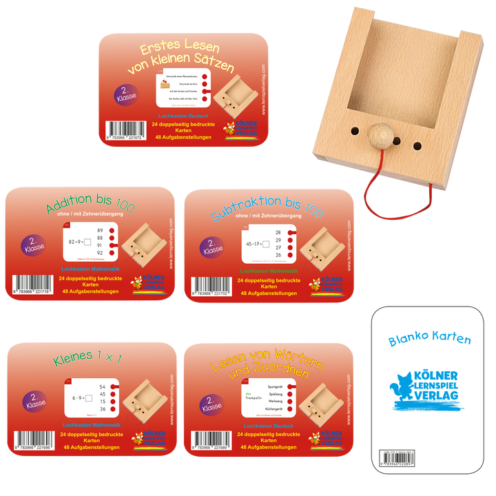 Mathe macht jetzt richtig Spaß! Mit diesem praktischen Kartensatz für den Lochkasten wird Rechnen zum spannenden Spiel. Perfekt für Schüler, die ihre Mathe-Fähigkeiten verbessern wollen.\n\nWas du damit machen kannst:\n• Abwechslungsreiche Rechenübungen\n• Spielerisches Lernen\n• Selbstständiges Üben\n• Verbesserung der Rechenfertigkeiten\n\nBesonders geeignet für:\n• Grundschüler\n• Förderunterricht\n• Nachhilfe\n• Zuhause zum Üben\n\nWarum der Kartensatz so praktisch ist:\n• Einfache Handhabung\n• Klare Aufgabenstellungen\n• Motivierendes Lernsystem\n• Wiederverwendbar\n\nEinfach Karte nehmen, Aufgabe lösen und kontrollieren - so macht Mathe lernen richtig Laune! Der Kartensatz ist die perfekte Ergänzung zum Lochkasten und sorgt für abwechslungsreiche Übungsstunden.\n\nIdeal für Eltern und Lehrer, die nach einer unterhaltsamen Methode suchen, um die Rechenfähigkeiten von Kindern zu fördern. Mit diesem Kartensatz wird jede Mathestunde zum Erfolgserlebnis!