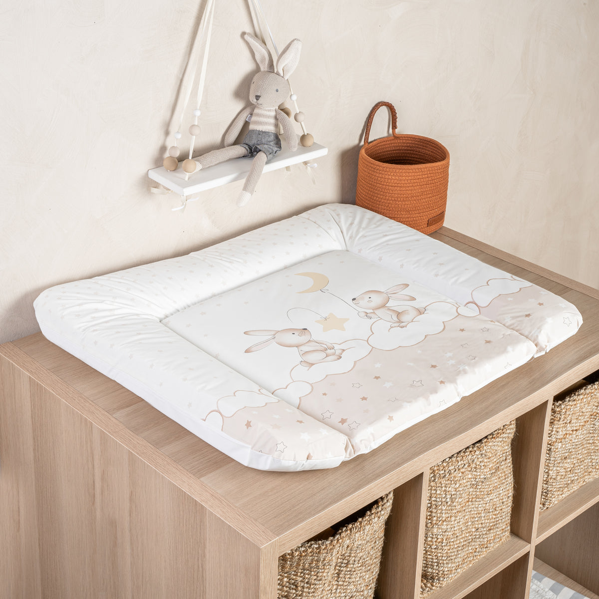 Wickeln soll doch eigentlich entspannt sein, oder? Mit dieser süßen Wickelauflage von Julius Zöllner wird es das! Die 2-Keil-Mulde sorgt dafür, dass dein Baby sicher und bequem liegt - auch auf schmaleren Wickeltischen. Die seitlichen Keile verhindern ein Wegrollen, damit du dich ganz aufs Wickeln konzentrieren kannst. Die phthalatfreie Folie mit dem niedlichen Traumhasen-Design ist nicht nur hübsch anzusehen, sondern auch super praktisch: Einfach mit einem feuchten Tuch abwischen und schon ist sie wieder sauber! Die Füllung aus Polyetherschaum polstert weich und ist sanft zu Babys Haut. Und das Beste: Sie ist OEKO-TEX zertifiziert und made in Germany - Qualität, der du vertrauen kannst. Seit 1960 stellt Julius Zöllner hochwertige Textilien für Kinder her. Also: Für eine stressfreie Wickelzeit und ein zufriedenes Baby!