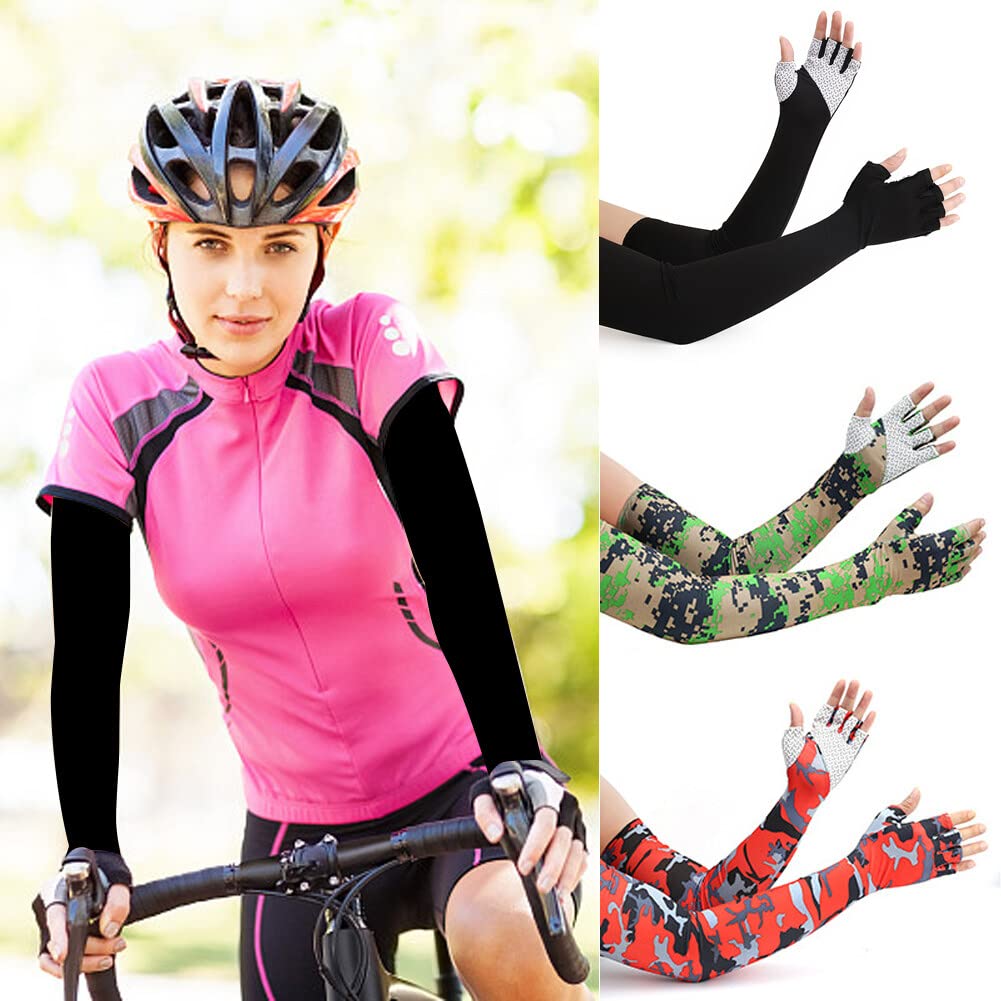 Perfekter Sonnenschutz für heiße Tage! Diese Armstulpen sind fingerlos, damit du alles gut greifen kannst, aber schützen deine Arme komplett vor UV-Strahlung. Aus atmungsaktivem Polyester, der Schweiß absorbiert und schnell trocknet. Mit 55cm Länge decken sie alles bis zum Oberarm ab. Zwei Paar im Set - immer ein frisches parat! Ideal für Radfahren, Wandern, Laufen oder Gartenarbeit. Elastisch und weich, engen nicht ein. Endlich keine Sonnenbrände mehr an den Armen!