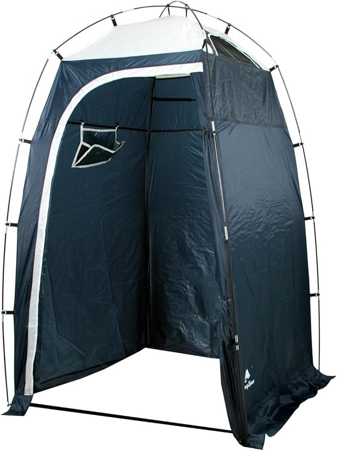 Perfekte Privatsphäre beim Camping! Dieses 2-Raum-Duschzelt von COSTWAY bietet dir alles, was du fürs Outdoor-Duschen brauchst. Mit den Maßen 210x106x210cm ist es geräumig genug für 2 Personen. Die Innentür mit Reißverschluss teilt den Raum in zwei Bereiche - ideal zum Duschen und Umziehen. Praktische Features: Obere Haken für Duschköpfe, Innentaschen für Pflegeprodukte und Wäscheleinen für Handtücher. Der PE- und Mesh-Boden lässt Wasser super ablaufen und sorgt für Hygiene. Drei Netzfenster und zwei Türen mit Reißverschluss ermöglicht gute Belüftung. Das silberbeschichtete Polyestergewebe schützt vor Sonne und leichtem Regen. Mit Metallpfählen und Seilen für extra Stabilität. Der Aufbau ist kinderleicht und benötigt keine Werkzeuge. In der praktischen Tragetasche (65x16x16cm) lässt sich das Zelt super transportieren. Perfekt für Camping, Festivals oder den Garten - so hast du immer deine private Outdoor-Oase!
