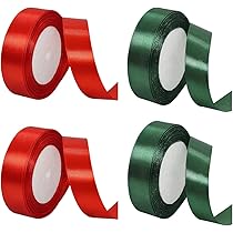 • Weihnachts Geschenkband 2 Rollen - Satinband Rot Grün 1cm × 25 Yards