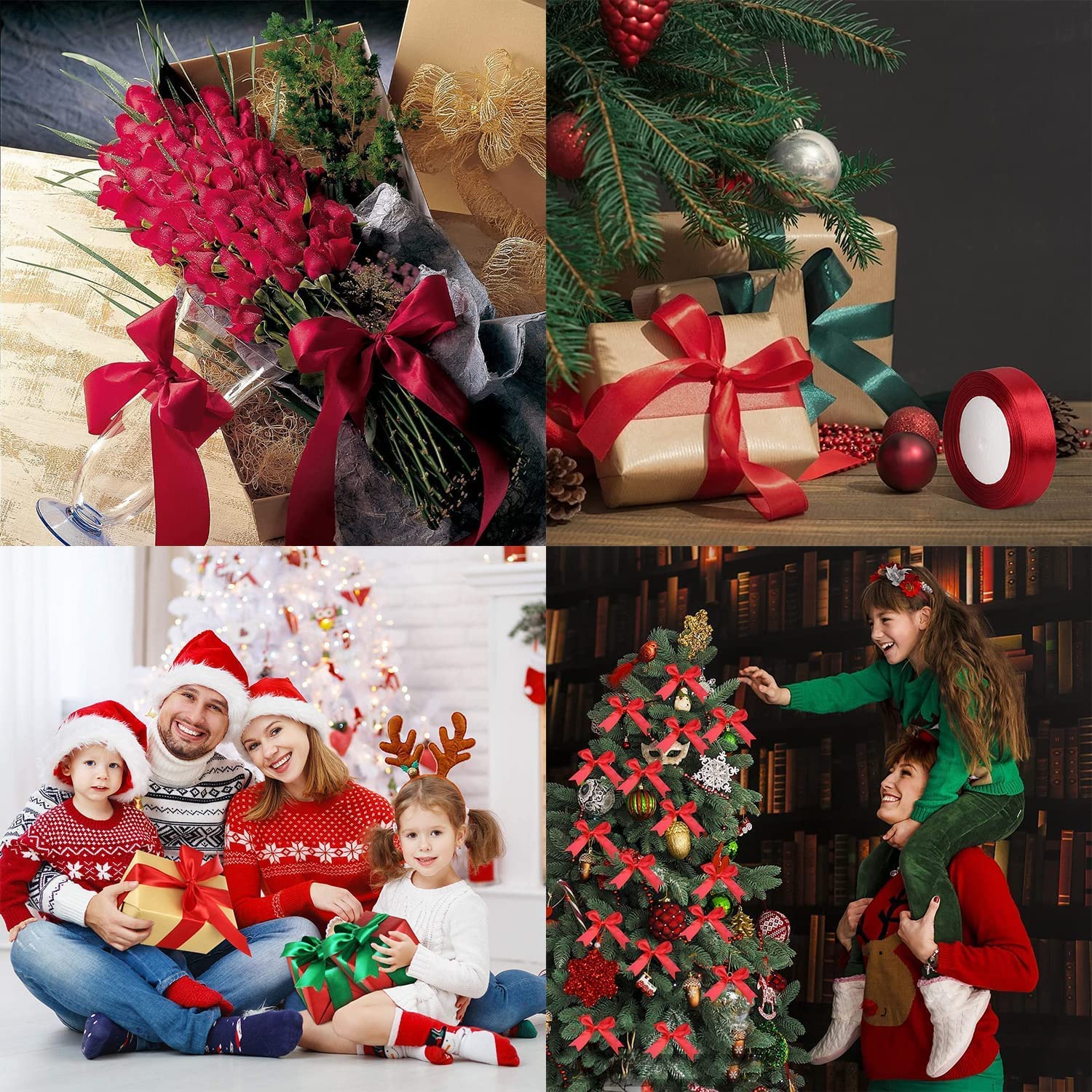 Weihnachts Geschenkband 2 Rollen - Satinband Rot Grün 1cm × 25 Yards