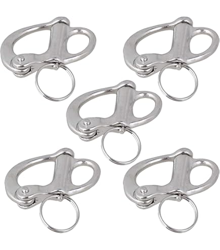 Alter, diese Schnappschäkel aus Edelstahl A4 sind echt robust! Rostfrei, säurebeständig und perfekt für den Einsatz am Meer oder bei schlechtem Wetter. Jeder Schäkel ist 70 mm lang mit 16 mm Innendurchmesser.