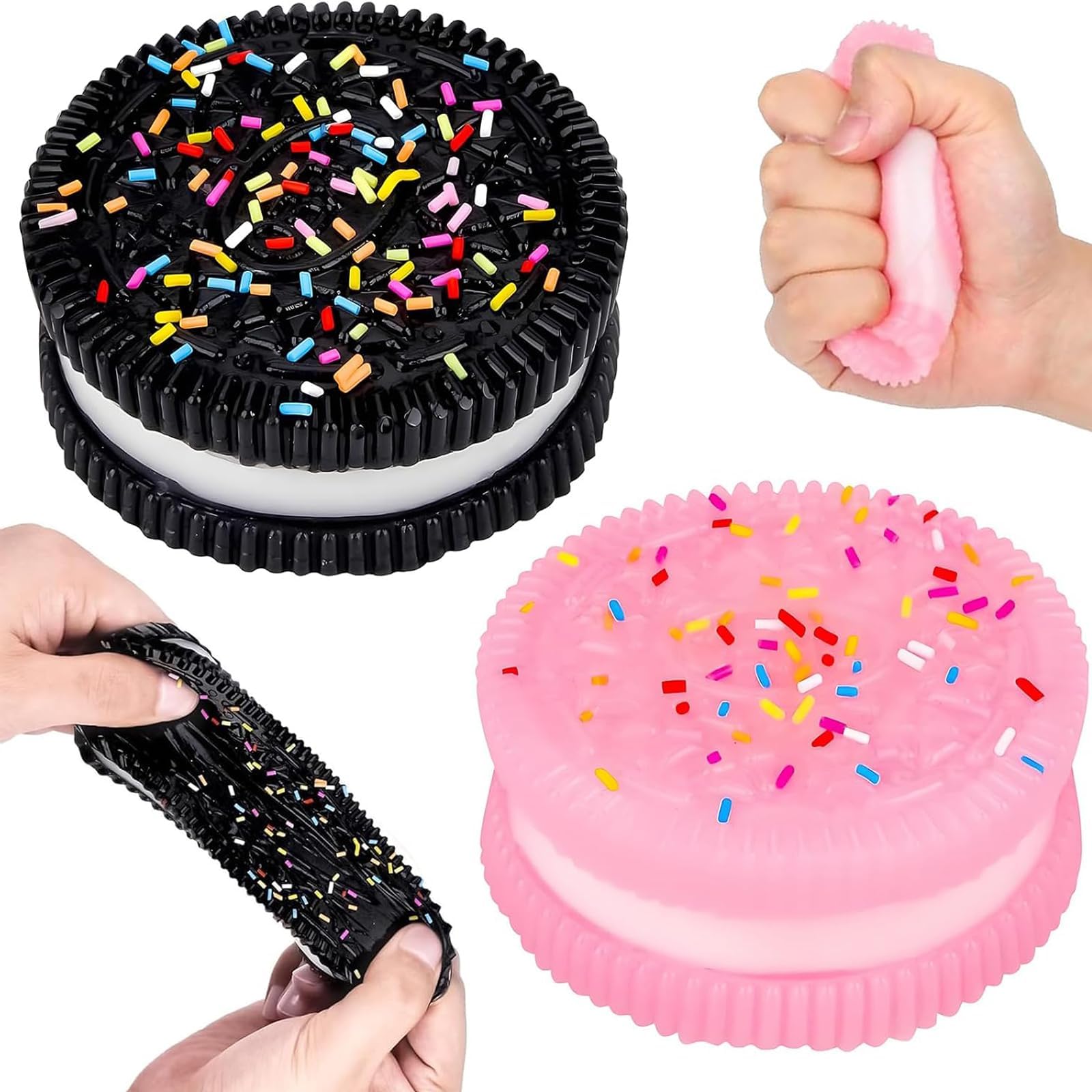 Stress ade mit diesen süßen Squishy-Keksen! Die ultraweichen Quetschfiguren in Schwarz und Lila fühlen sich super befriedigend an, wenn du sie drückst und knetest. Aus hochwertigem, flexiblem Material, das sich immer wieder in die ursprüngliche Form zurückbildet. Perfekt für stressige Momente im Büro, in der Schule oder einfach zum Entspannen zu Hause. Klein und leicht genug für die Hosentasche - dein mobiler Stresskiller für unterwegs. Ein tolles Geschenk für Kinder und Erwachsene, die etwas Abwechslung und Entspannung im Alltag brauchen. Hol dir deine persönliche Anti-Stress-Therapie!