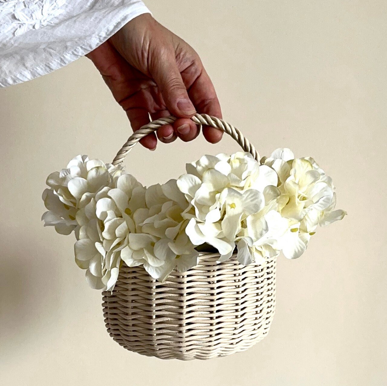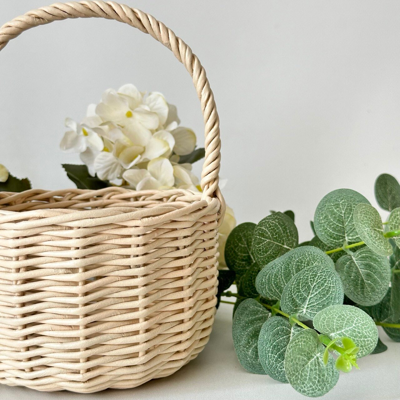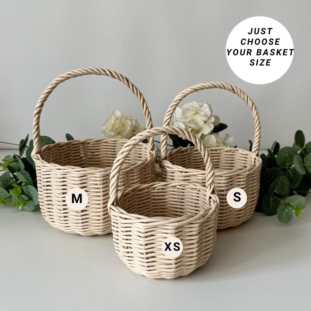 So süß! Diese 2 Mini-Blumenkörbe sind perfekt für deine Hochzeit oder andere besondere Anlässe. Aus PE-Material in Weidenoptik geflochten, sehen sie aus wie echte Rattankörbchen, sind aber viel leichter und pflegeleichter. Mit ca. 10x8x12cm (oval) und 9x12cm (rund) sind sie ideal für kleine Blumenmädchenhände. Die praktischen Henkel machen das Tragen super einfach. Perfekt für Konfetti, Blütenblätter oder kleine Blumensträuße. Aber nicht nur für Hochzeiten - auch für Ostern, Weihnachten, Geburtstage oder als Deko im Kinderzimmer super geeignet. Die weiße Farbe passt zu jedem Stil und die rustikale Optik verleiht jedem Event einen Hauch von Romantik. Einfach mit Blumen oder Deko füllen und schon sind deine Blumenmädchen bereit für den großen Auftritt!