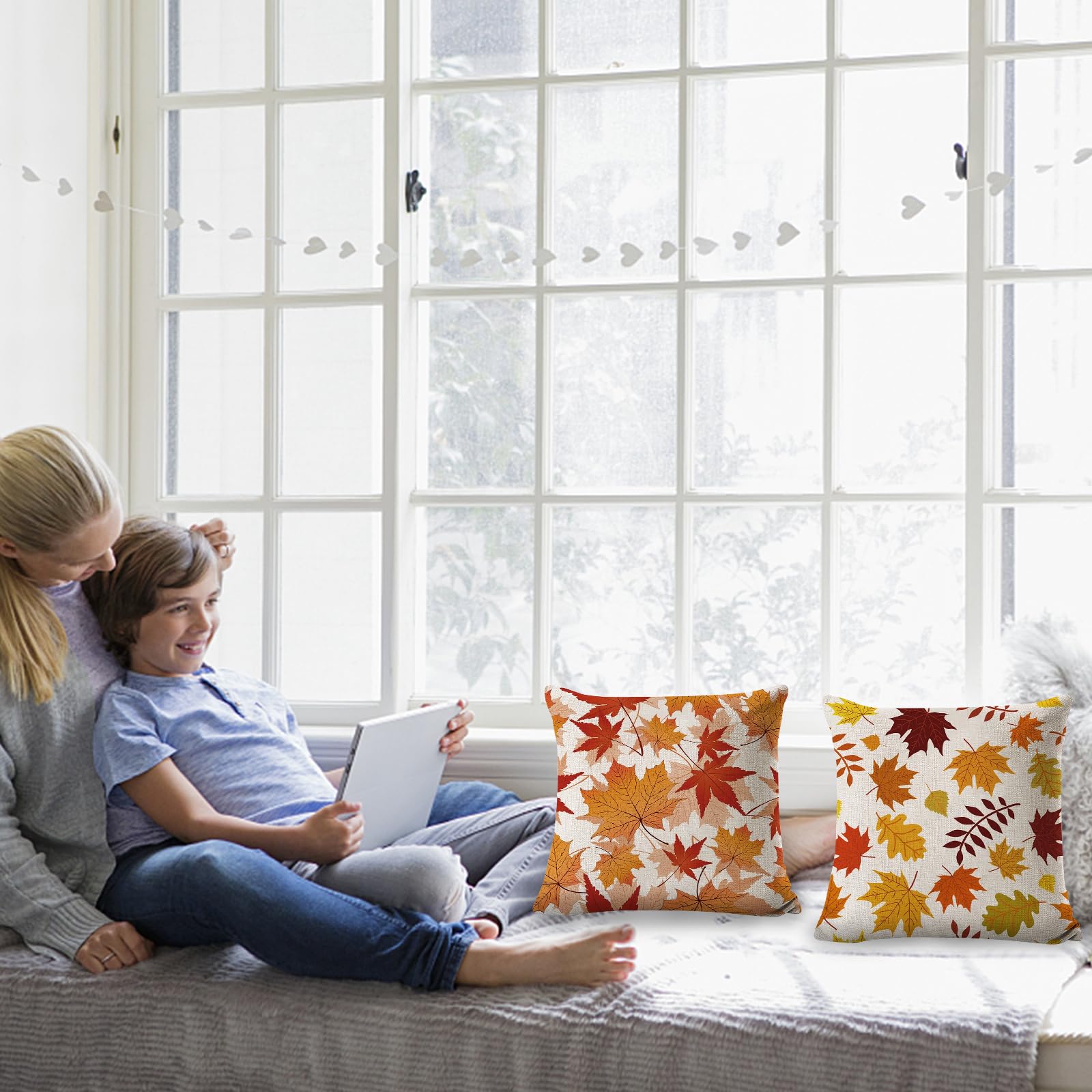 Coole Herbst-Deko für dein Zuhause! Dieses Set mit 2 Kissenbezügen im Ahornblatt-Design bringt gemütliche Herbststimmung ins Wohnzimmer, Schlafzimmer oder aufs Sofa. Maße: 45x45 cm - ohne Füllung, also einfach über deine vorhandenen Kissen ziehen. Hergestellt aus 100% Polyester, superweich und hautfreundlich. Die Farben sind total herbstlich und die Verarbeitung ist sauber, keine ausgefransten Ränder. Perfekt für die gemütliche Jahreszeit oder als Thanksgiving-Dekoration. Und praktisch: Maschinenwäsche bei niedrigen Temperaturen - kein Bügeln nötig. Mach's dir gemütlich mit dieser lässigen Herbst-Deko! Übrigens: Durch handgefertigte Produktion kann die Größe minimal um 1-2 cm abweichen, aber das fällt kaum auf. Einfach stylisch!