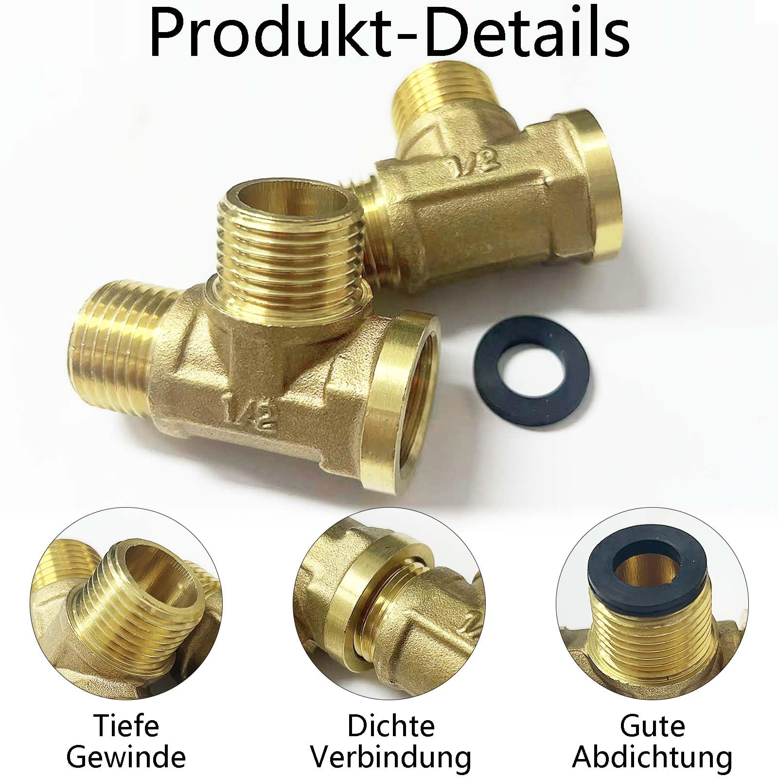 Perfekte T-Stücke für deine Wasserinstallation! Aus robustem Messing gefertigt, halten sie Temperaturen von -20°C bis +120°C aus und bis zu 35 Bar Druck. Die Gewinde sind sauber geschnitten und die Oberfläche glatt - das schraubt sich richtig gut ein. Mit O-Ring für dichte Verbindungen und 360° schwenkbar für flexible Montage. Ideal für Trinkwasser, Kälteanlagen und Sanitär-Bereiche. Im Set: 2 T-Stücke plus Dichtungsband. Einfach installieren und du hast eine professionelle Verbindung, die lange hält. Ob für Bad, Küche oder Heizung - mit diesen Messing-T-Stücken machst du nichts verkehrt!