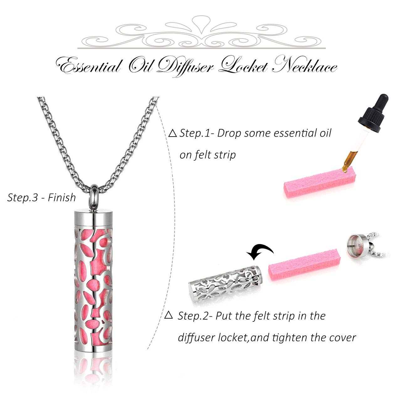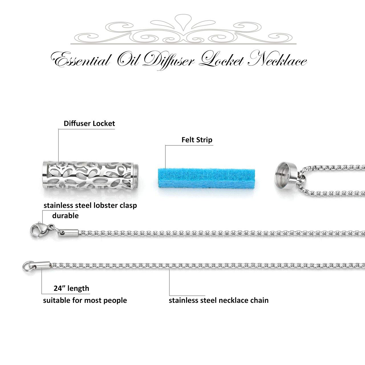 • Ätherisches Öl Diffusor Halskette - 2 Stück Mit Glitzer Pads Edelstahl