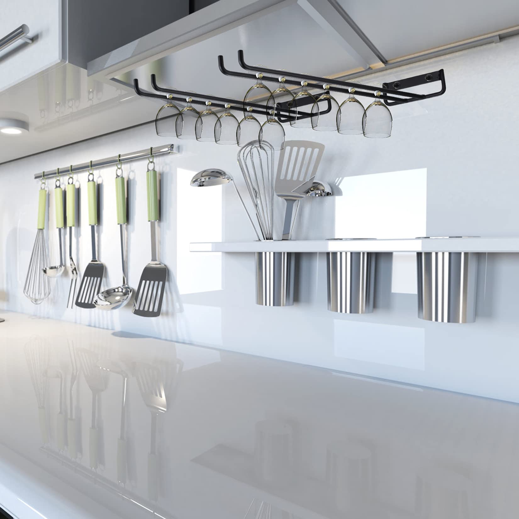 Wow, diese katmerio Weinglashalter sind einfach praktisch! Im 2er-Set für nur 33,7cm Länge - perfekt unter Hängeschränken. Selbstklebend - kein Bohren nötig! Einfach Position markieren, Schutzfolie abziehen und festdrücken. Hält alle Stielgläser sicher: Bordeaux, Champagner, Burgunder - alles passt. Macht deine Küche oder Bar sofort aufgeräumter. Einfach montieren und sich über ordentliche Glasaufbewahrung freuen!