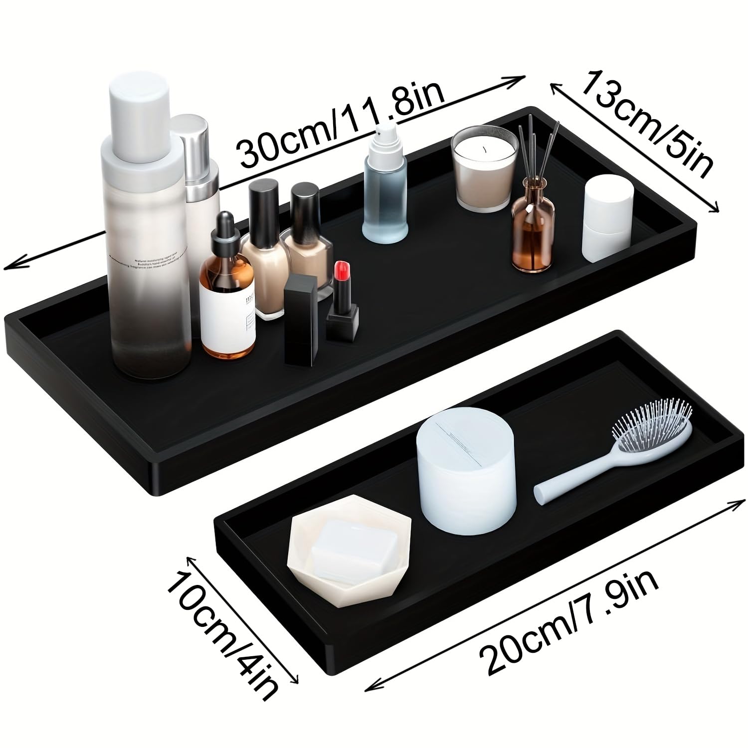 Diese beiden ovalen Silikon-Tabletts bringen Ordnung in dein Zuhause! Perfekt fürs Badezimmer, um Kosmetik, Zahnbürsten oder Rasierzubehör griffbereit zu haben. Aber auch in der Küche sind sie super für Gewürze, Seife oder Küchenutensilien. Aus hochwertigem, wasserbeständigem Silikon sind sie leicht zu reinigen und rutschfest. Die erhöhten Ränder verhindern, dass was runterfällt, und schützen deine Oberflächen vor Wasserflecken. In elegantem Schwarz passen sie zu jedem Einrichtungsstil. Einfach praktisch und vielseitig - ob auf der Badewanne, am Waschbecken oder in der Küchenspüle. Mit diesen beiden Organizern hast du immer alles ordentlich zur Hand!