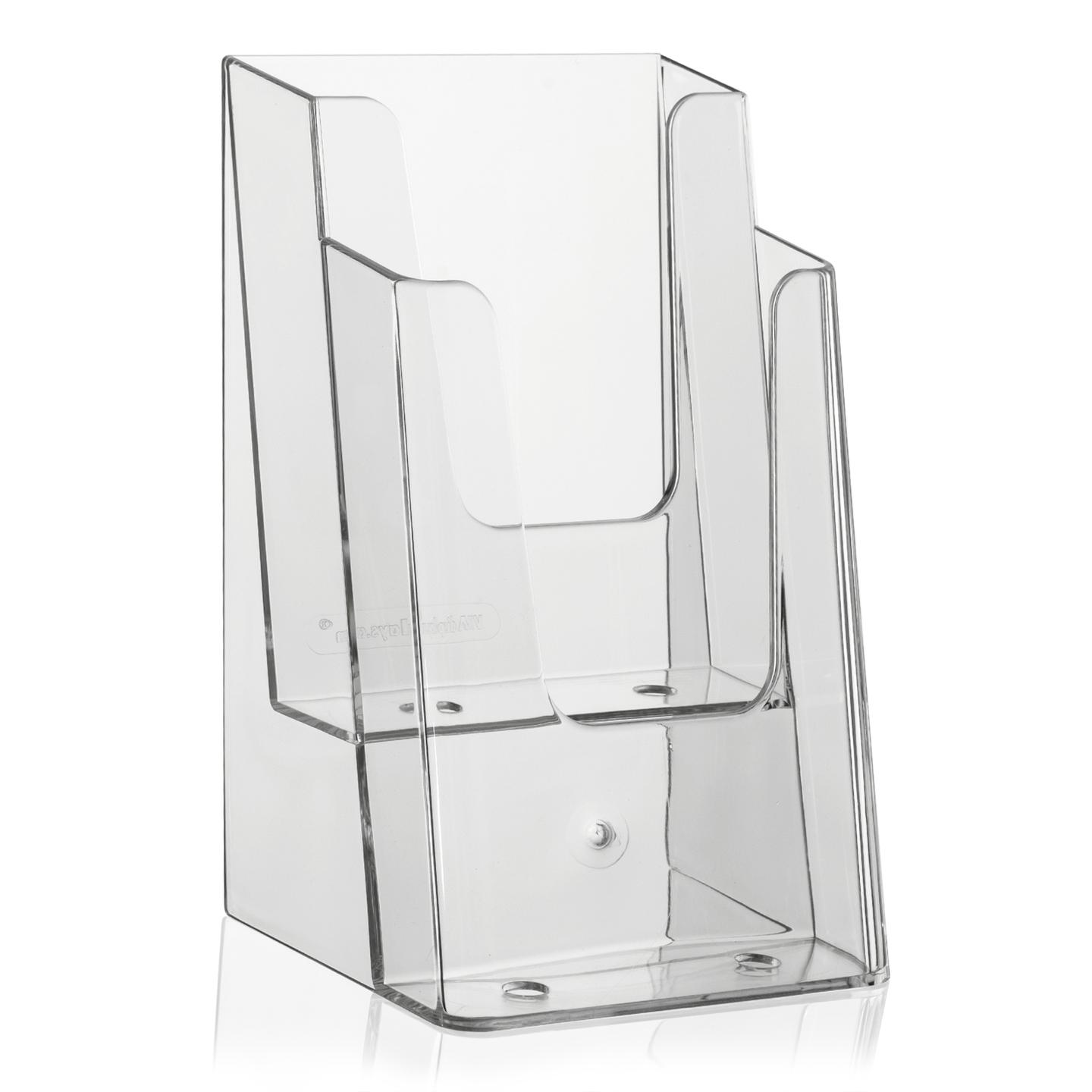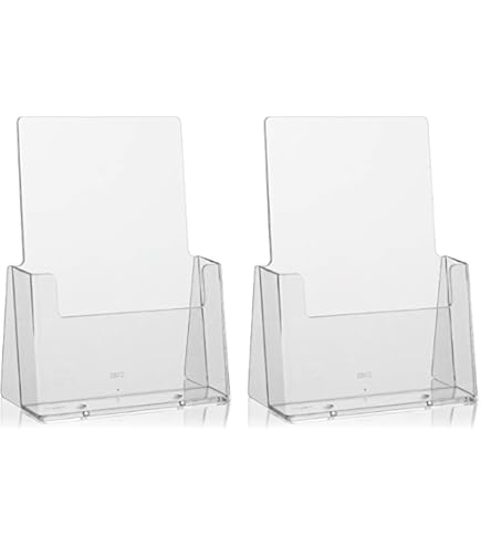 Boah, diese Flyerständer sind ja mal mega praktisch! 2 Stück im Set - perfekt für Büro, Theke oder Laden. Aus klarem Acryl - total transparent, damit deine Flyer gut sichtbar sind.\n\nMaße: 14 x 7,6 x 20,8 cm - genau richtig für DIN A5. Das schräge L-Design steht super stabil und die Flyer rutschen nicht raus.\n\nPlatzsparend - nimmt kaum Platz weg aber sorgt für Ordnung! Einfach Flyer reinlegen - fertig! Kann mit feuchten Tüchern abgewischt werden.\n\nPerfekt für Geschäfte, Ausstellungen, Hotels, Restaurants - überall wo man Infomaterial präsentieren will. Sieht professionell aus und ist super stabil.\n\nSchluss mit unordentlichen Flyer-Stapeln! Mit diesen Haltern sieht alles gleich viel aufgeräumter aus. Einfach, aber effektiv - genau wie es sein soll!