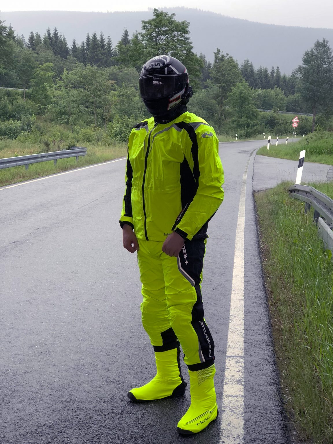 Na, lässt du dich auch nicht vom Regen abhalten? Mit der FC-Moto Urban Rain 2-Teiler Regenkombi bleibst du trocken! Jacke und Hose separat - viel bequemer als diese nervigen Einteiler. Weiter Schnitt, passt easy über deine normale Klamotten. Jacke hat nen wasserdichten Reißverschluss, verstellbare Ärmelbündchen und Taillengummi. Hose mit Hüftgummizug und anti-rutsch Patches am Hintern - damit sitzt alles perfekt. Reflektoren sorgen für Sichtbarkeit, und nach Gebrauch packst du alles zusammen im praktischen Beutel weg. Schwarz/gelb, Größe 2XL - ideal für den täglichen Ride zur Arbeit oder lange Touren. Endlich kein Nasswerden mehr! Einfach überziehen und los - so macht Regenfahren Spaß!
