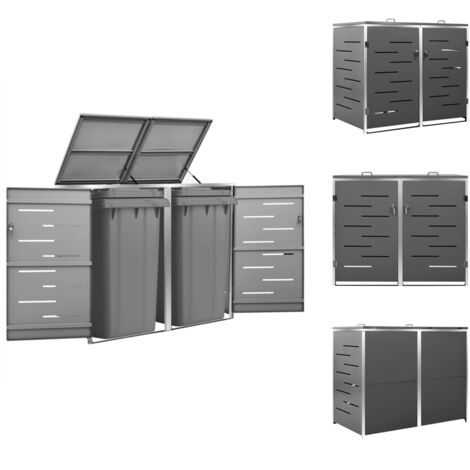 • Mülltonnenbox Für 2 Tonnen 138x77,5x115,5cm - Edelstahl Rahmen Grau