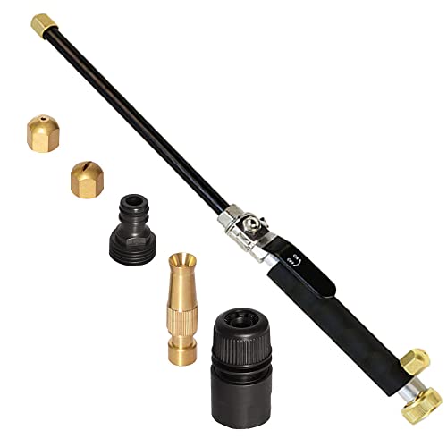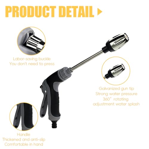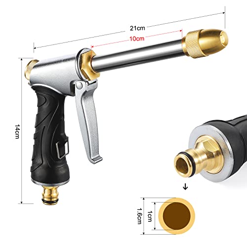 Diese Hochdruck-Spritzpistole ist ein echter Alleskönner! Mit 48cm Länge kommst du super an alle Ecken und Winkel. Das 2-in-1 Design hat sowohl eine kraftvolle Strahldüse für hartnäckigen Schmutz auf Beton oder Ziegeln, als auch eine sanfte Fächerdüse für größere Flächen wie Fenster oder Gartenpflanzen. Kompatibel mit Standard 3/4\ Gartenschläuchen - passt also an die meisten Wasseranschlüsse. Aus ABS-Kunststoff, Legierung und Kupfer - leicht aber extrem langlebig. Der abnehmbare Schlauch ist mega praktisch: Für enge Räume einfach abnehmen oder platzsparend verstauen. Perfekt für Auto waschen, Terrasse reinigen, Pflanzen gießen - einfach für alles rund um Haus und Garten. Die einstellbaren Sprühmuster schonen Oberflächen aber packen trotzem richtig zu. Einfach ein robustes Teil das seinen Job richtig gut macht!